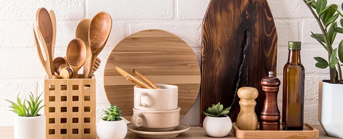 Accessori da cucina in legno: il materiale più usato nella produzione di strumenti da cucina, il cui vantaggio è quello di non segnare o rovinare le superfici dei tegami, essere indeformabile, non condurre il calore e avere un grande fascino e valore estetico. Tuttavia, gli accessori in legno mostrano una maggiore propensione al deterioramento e allo sviluppo di batteri e muffe a causa dell’umidità.