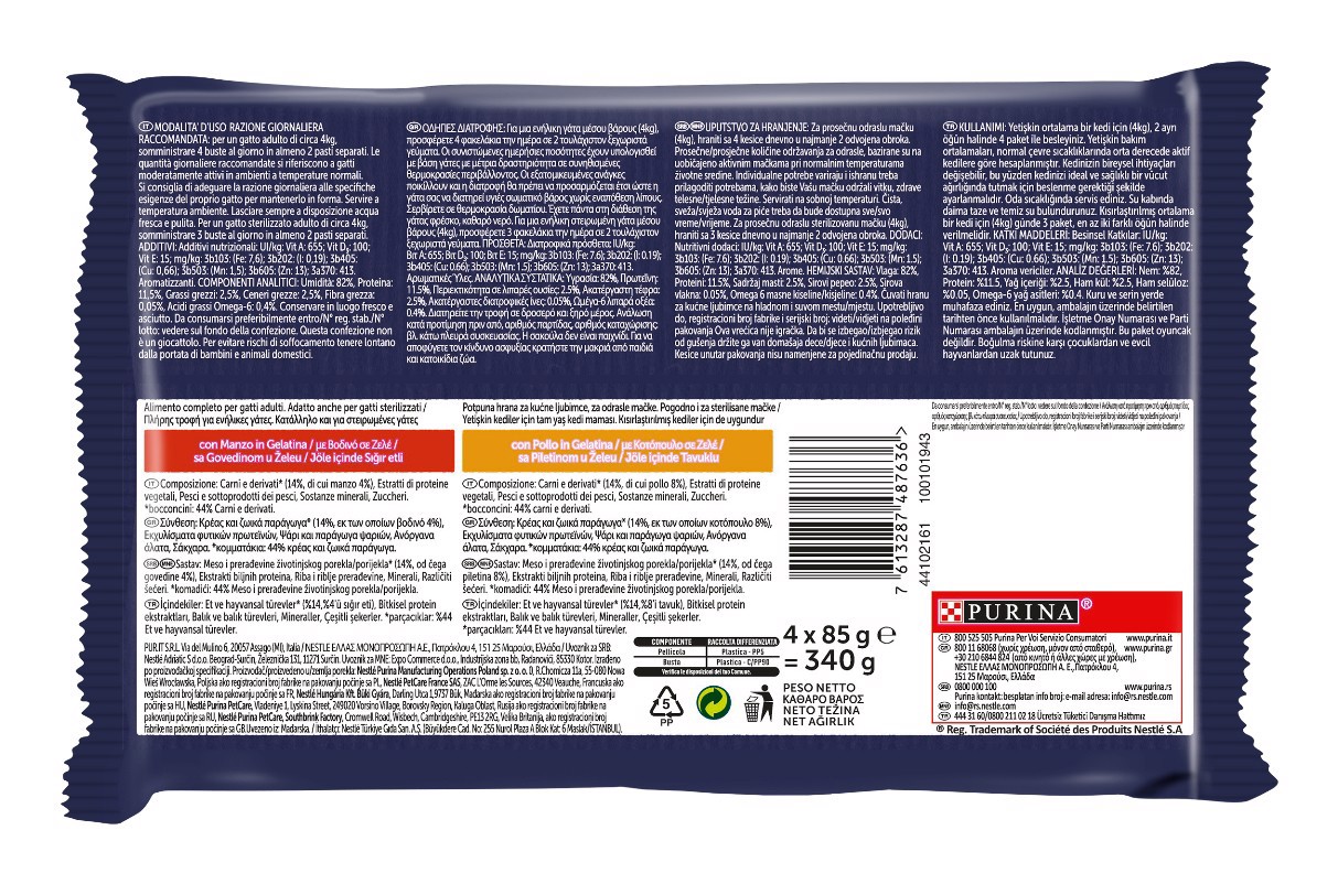 Purina Felix 12480326 Le GHIOTTONERIE per gatto Adulto con Manzo e Pollo 4x85 g