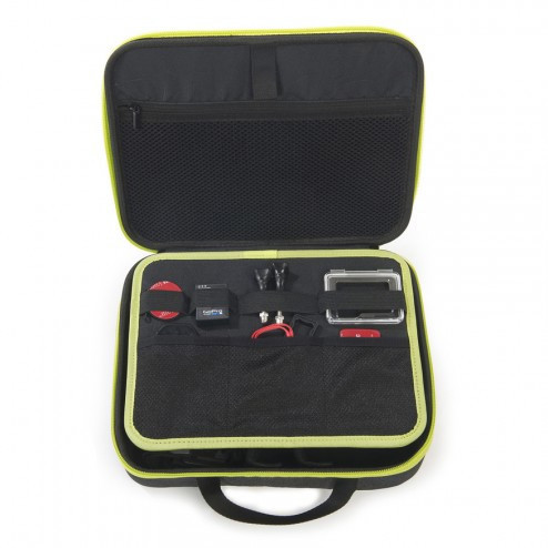 La scocca rigida in termoformato protegge il tuo equipaggiamento da qualsiasi urto mentre i divisori interni imbottiti, riposizionabili a piacimento, consentono di organizzare gli spazi a seconda delle necessità, rendendo Armadillo compatibile con qualsiasi modello di POV action camera, come GoPro HERO, e numerosi accessori.