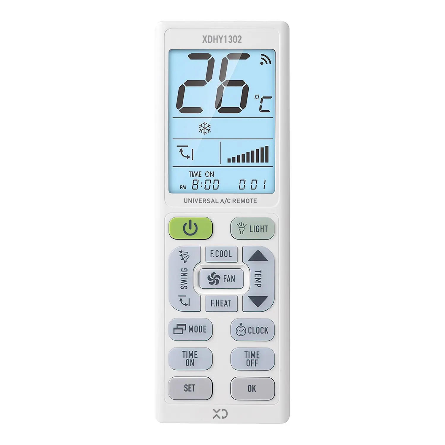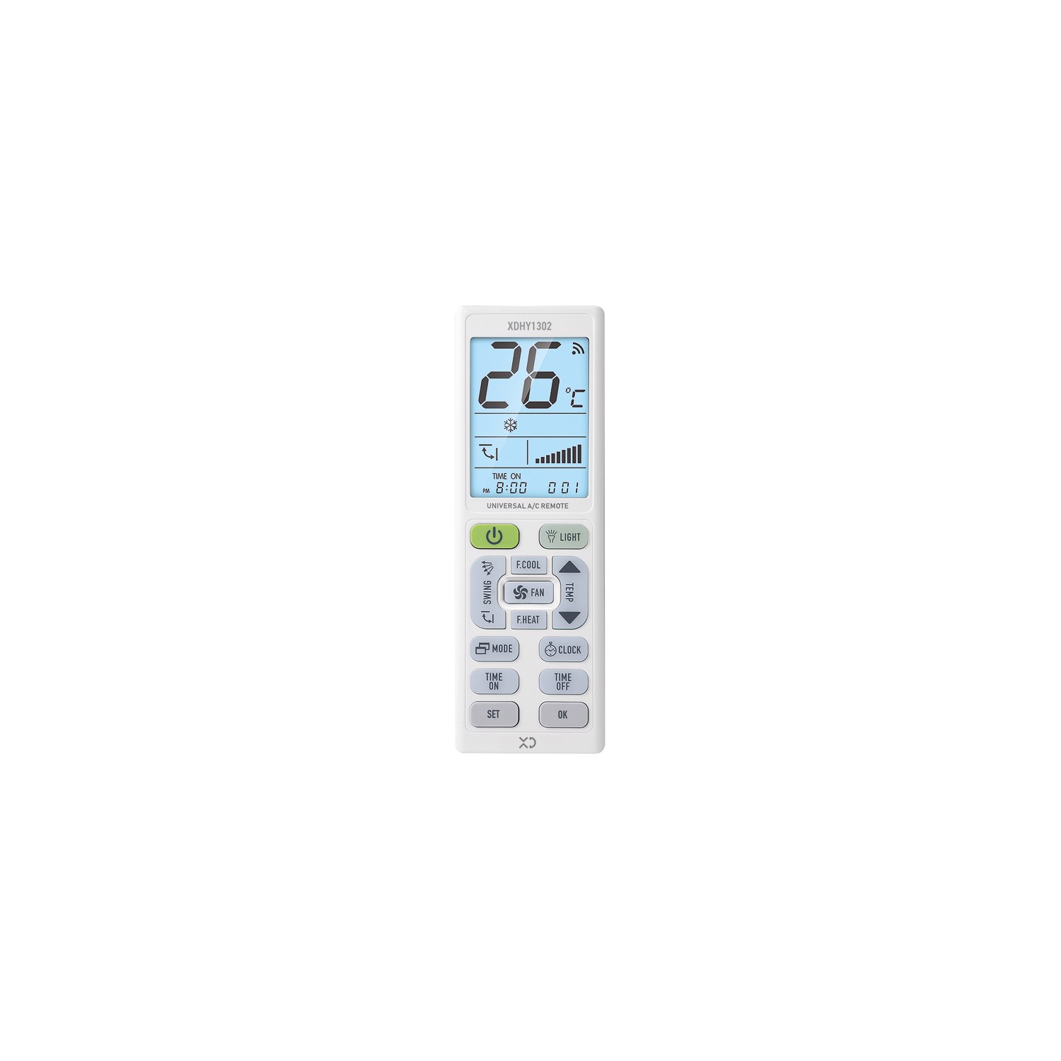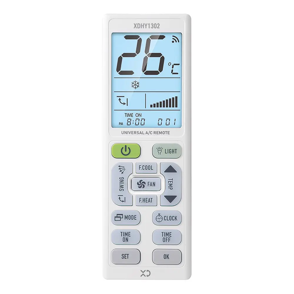 XDHY1302 è un elegante telecomando universale per aria condizionata con luce a LED.