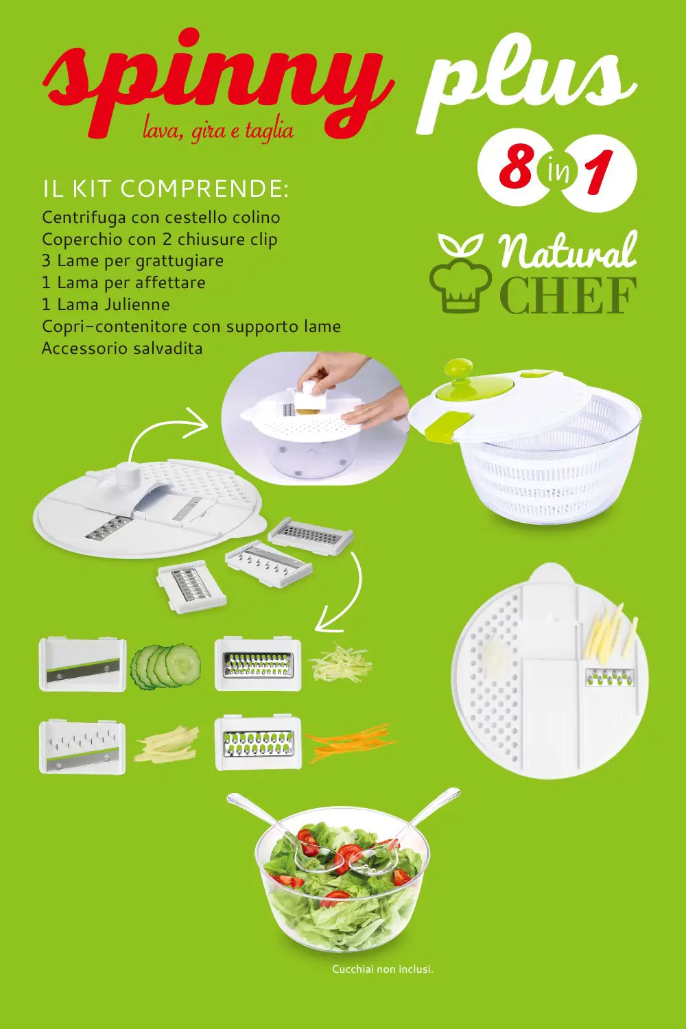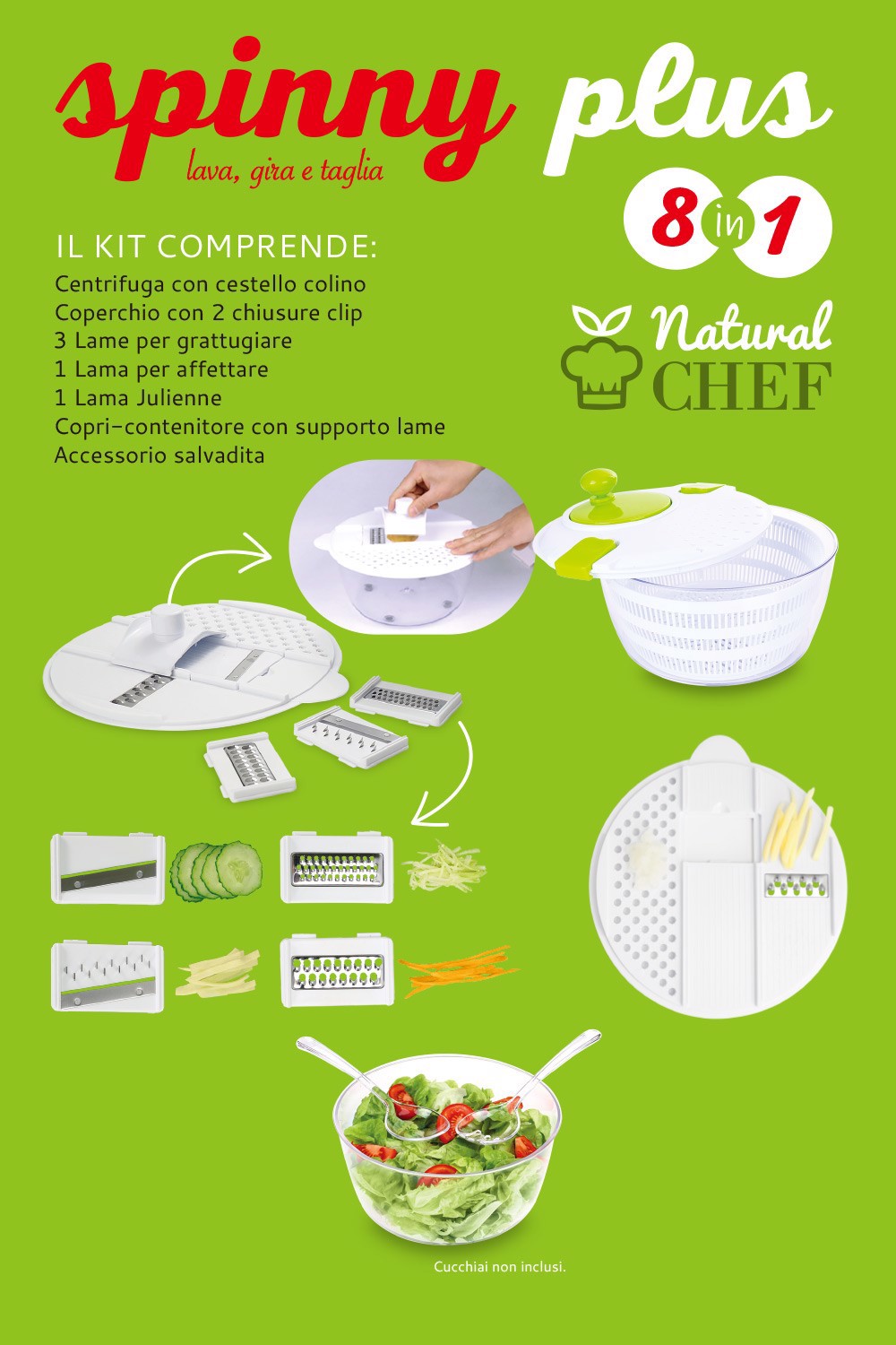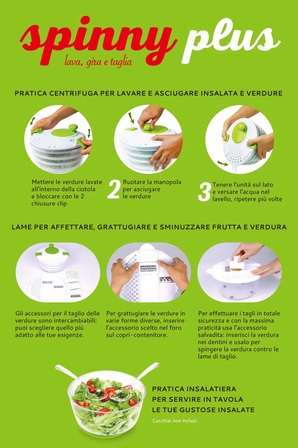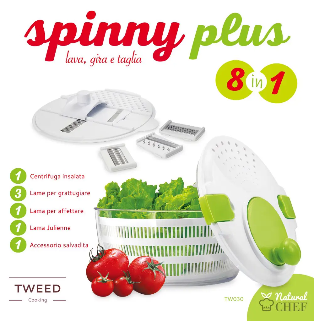 TWEED TW030 centrifuga da insalata Verde, Bianco Manovella/manico