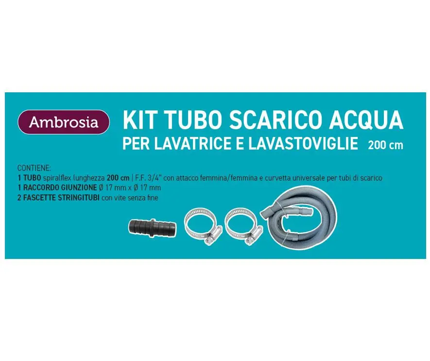 Ambrosia KIT: TUBO SCARICO LAVAT. CM200 CON CURVETTA + 1 RACCORDO P/TUBO SCARICO MM 17X17 + 2 FASCETTE STRINGITUBI