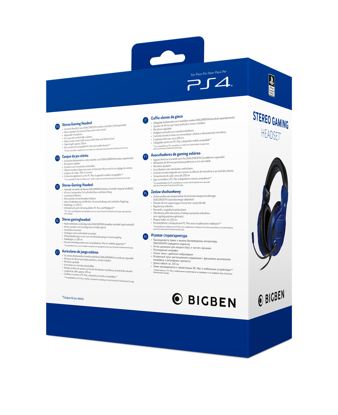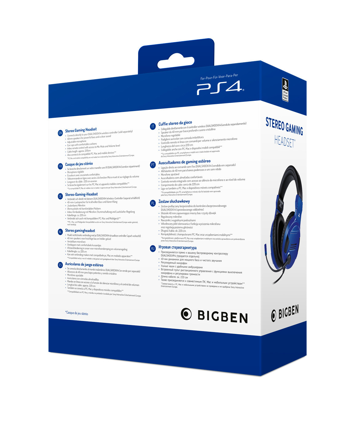 Bigben Interactive PS4OFHEADSETV3G, Cuffia, Padiglione auricolare, Giocare, Blu, Stereofonico, Manopola