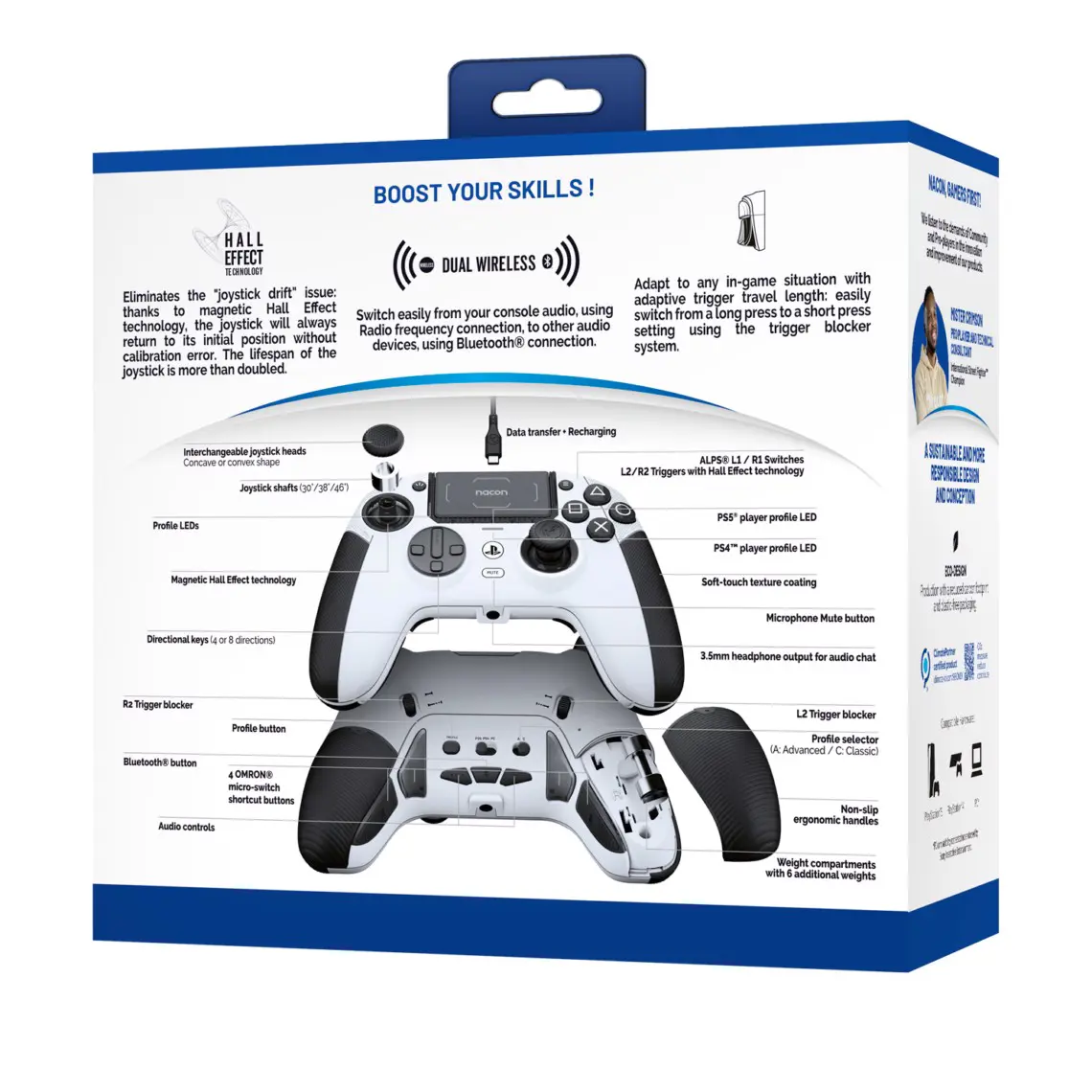 NACON Revolution 5 Pro, Gamepad, PC, PlayStation 4, PlayStation 5, D-pad, Pulsanti direzionali, Pulsante Menu, Wireless, Bluetooth, Nero, Bianco