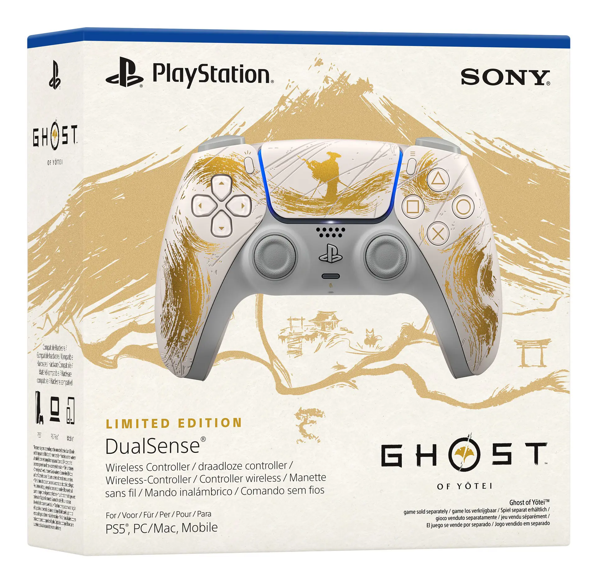 Sony DualSense Wireless Controller - Ghost of Yōtei Gold Limited Edition. Tipo di dispositivo: Gamepad, Piattaforme di gioco supportate: Android, MAC, PC, PlayStation 5, iOS, Tasti funzione per il controllo del gioco: D-pad, Tasto Home, Pulsante Opzioni, Pulsante Condividi. Tecnologia di connessione: Con cavo e senza cavo, Interfaccia dispositivo: Bluetooth/USB, Connettore USB: USB tipo-C. Colore del prodotto: Oro, Bianco, Compatibilità: PS5 Console PS5 Pro Console PC/Mac Mobile devices. Alimentazione: Batteria, Tipo batteria: Da Incasso, Tecnologia batteria: Ioni di Litio. Larghezza: 160 mm, Profondità: 106 mm, Altezza: 66 mm