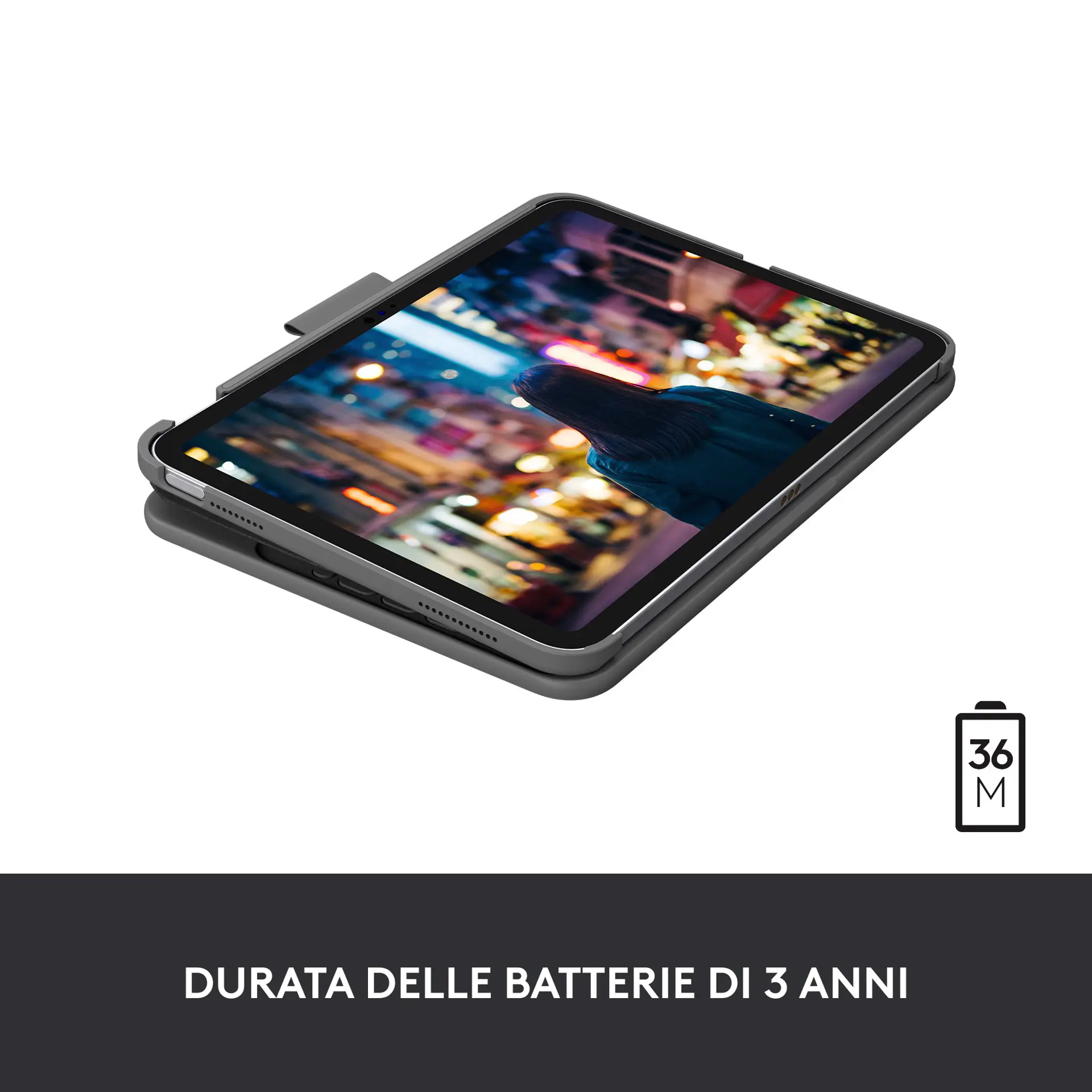 Altre caratteristiche: Digita comodamente grazie a tasti di grandi dimensioni, ben distanziati e distribuiti in modo ottimale; La tastiera include anche tasti di scelta rapida iPadOS per l’accesso rapido a controlli relativi a volume, contenuti multimediali e altre funzionalità. Slim Folio utilizza 2 batterie a bottone sostituibili per alimentare la tastiera; Grazie a un sistema di gestione dell’alimentazione intelligente, è possibile utilizzare Slim Folio fino a 3 anni senza sostituire le batterie. Slim Folio utilizza la tecnologia wireless Bluetooth Low Energy avanzata per garantire una connessione affidabile e a basso consumo energetico. Proteggi totalmente il tuo iPad da urti e graffi; Il tessuto esterno è morbido al tatto e resistente all’usura. Disegna e scrivi con la tua Logitech Crayon o Apple Pencil, quindi riponila in un pratico alloggiamento per non perderla e per averla sempre a portata di mano