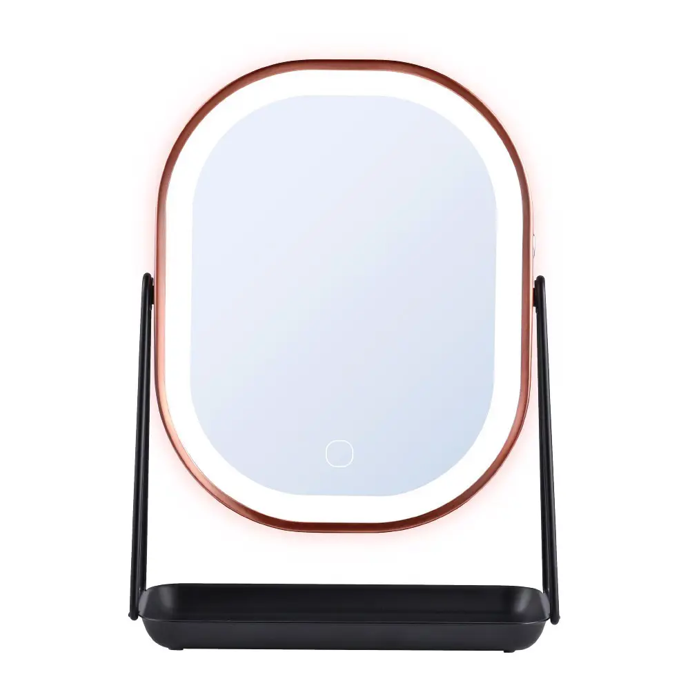 3 TONALITÀ DI LUCE E LUMINOSITÀ REGOLABILE lo specchio per il trucco offre tre modalità di illuminazione — bianco freddo, luce naturale e giallo caldo — e consente di regolare l’intensità luminosa tramite il pratico pulsante touch, per adattarsi perfettamente a ogni esigenza quotidiana.