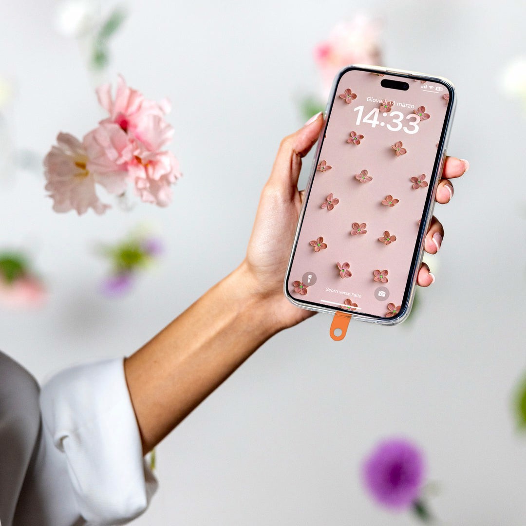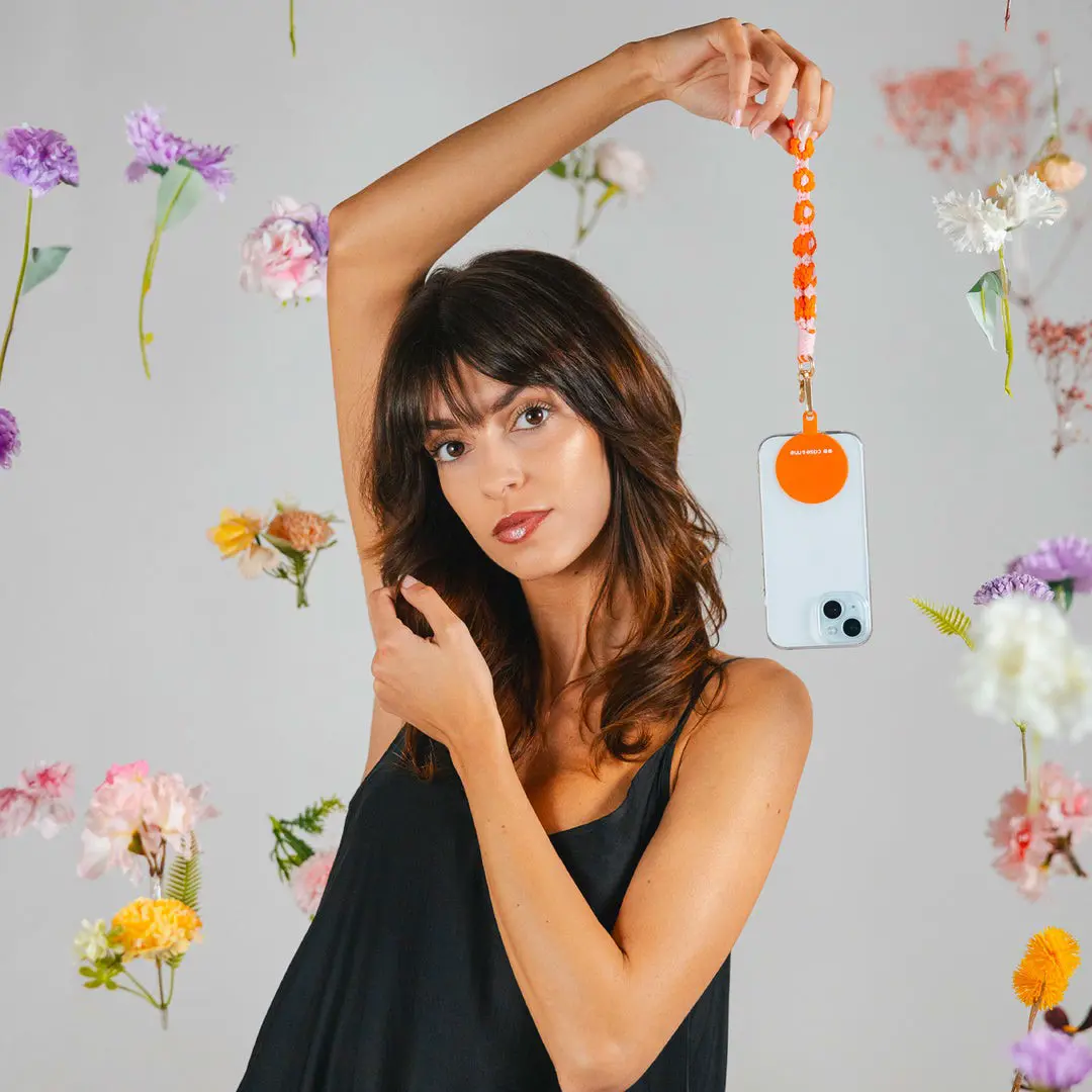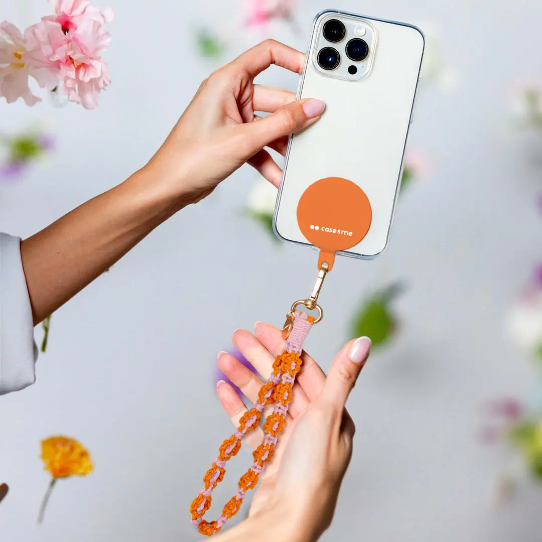 Case & Me Coco Braccialetto per smartphone a fiori rosa, arancione