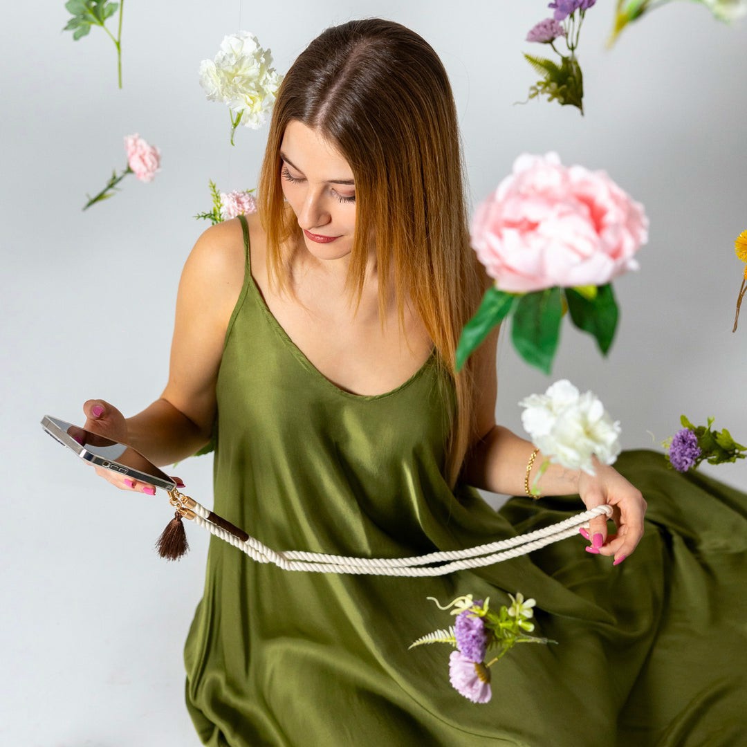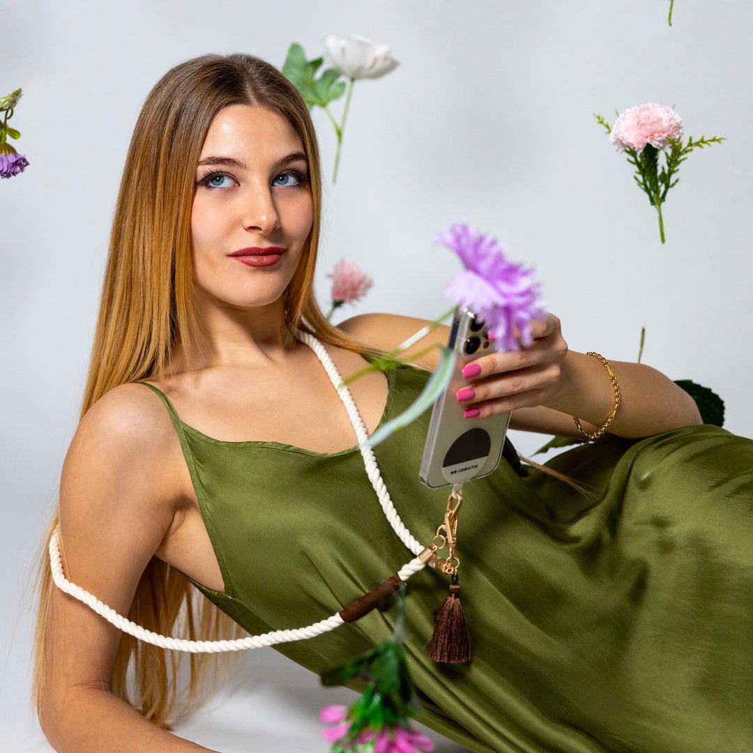 Case & Me CMCORDNECKTW2 Laccio a tracolla e collana per smartphone marrone, bianco