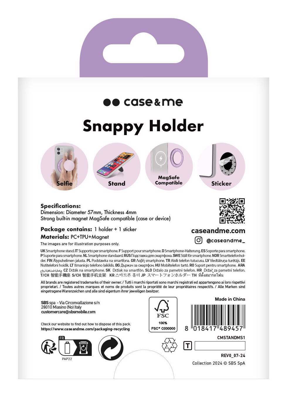 Case & Me CMSTANDMS1 Supporto per smartphone compatibile con MagSafe viola, rosa