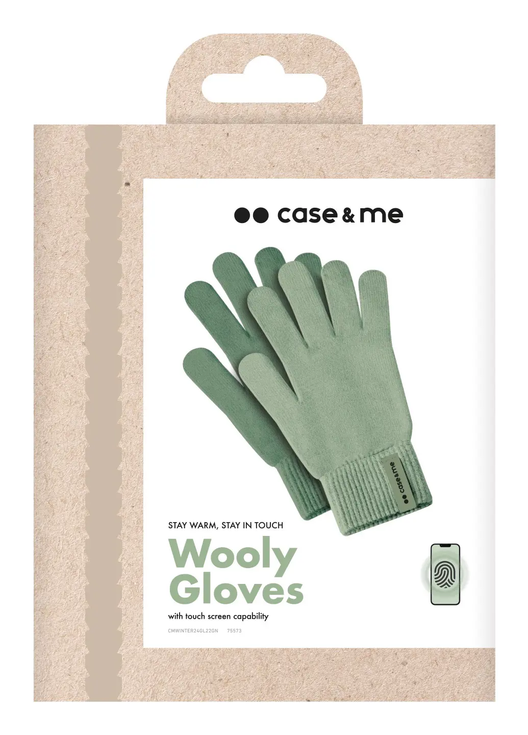 I guanti touch non sono solo funzionali, ma anche alla moda. L'etichetta con la scritta "case&me" e la finitura elastica a strisce sul polso