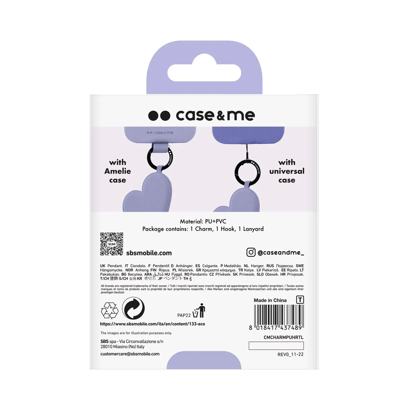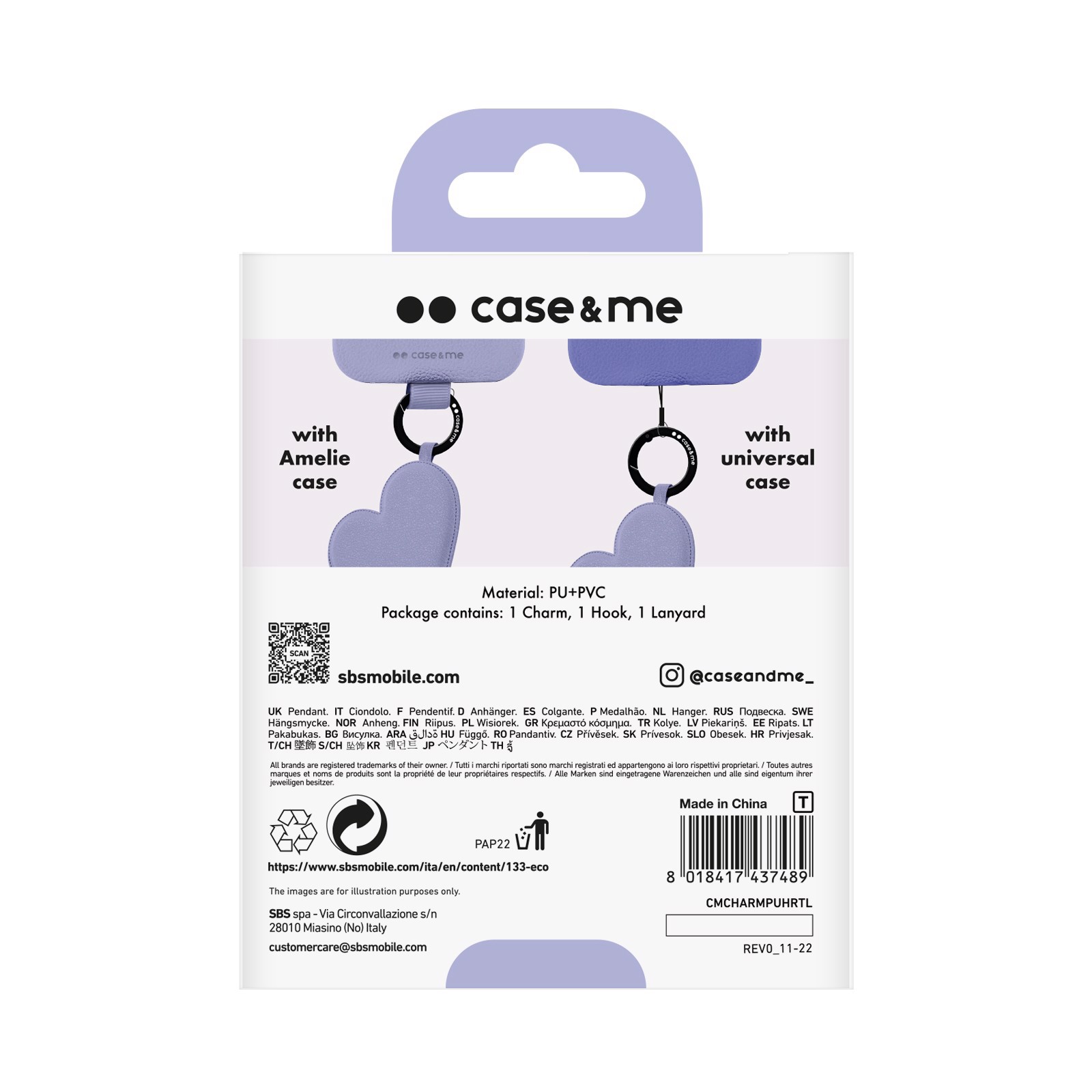 SBS CMCHARMPUHRTL, Lavanda, PU pelle, Cloruro di polivinile (PVC), 100 mm, 15 mm, 140 mm, 40 g