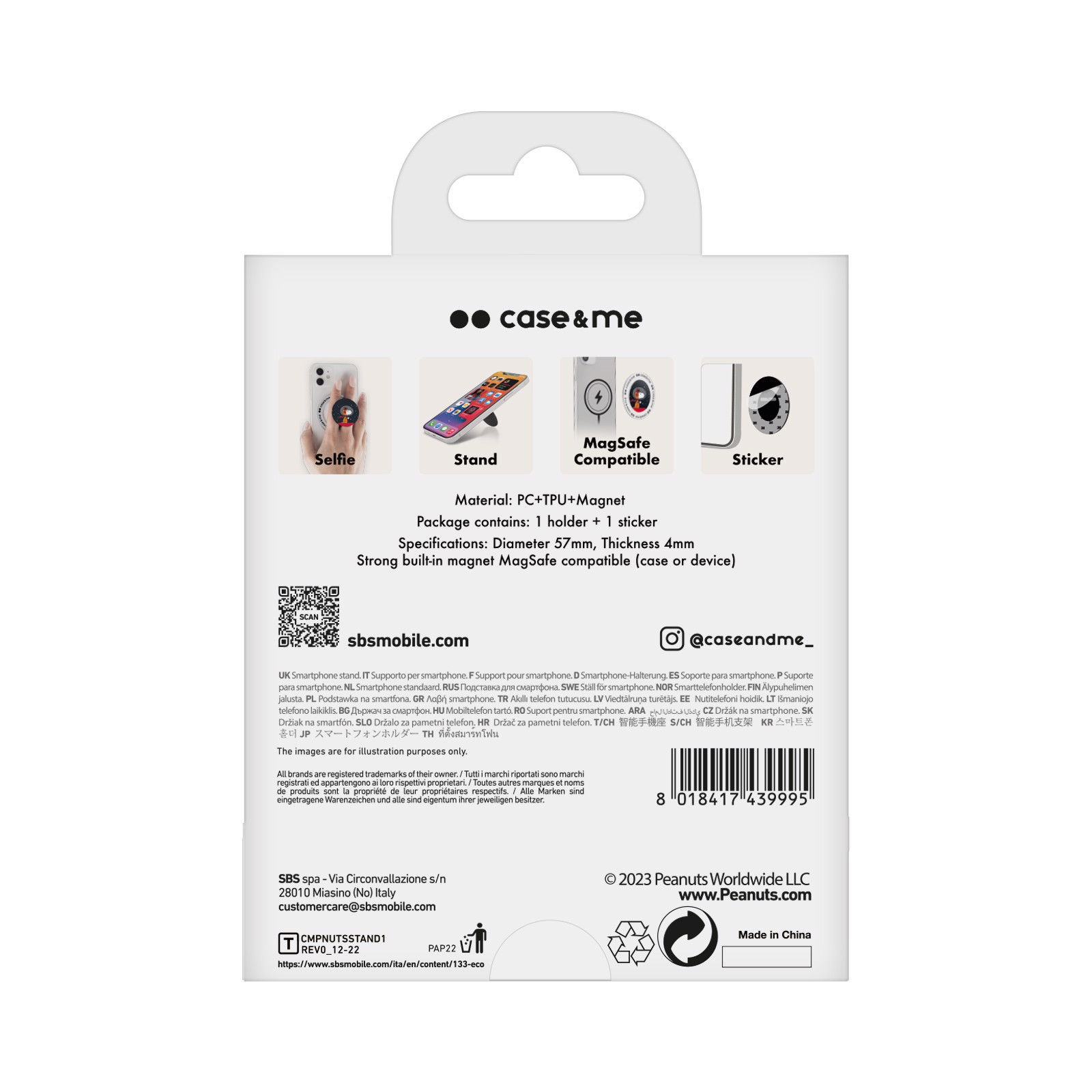 SBS CMPNUTSSTAND1, Multicolore, Policarbonato (PC), Poliuretano termoplastico (TPU), Universale, 5,7 cm, 100 mm, 15 mm