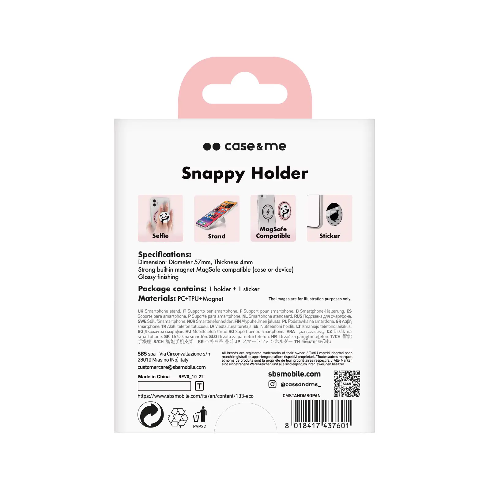Grazie all'adesivo, potrai fissarlo nella parte posteriore di qualsiasi cellulare Apple, Samsung, Xiaomi, Huawei, Oppo e di molti altri marchi. Se hai un iPhone con ricarica MagSafe, invece, potrai attaccarlo semplicemente avvicinandolo grazie al magnete integrato.