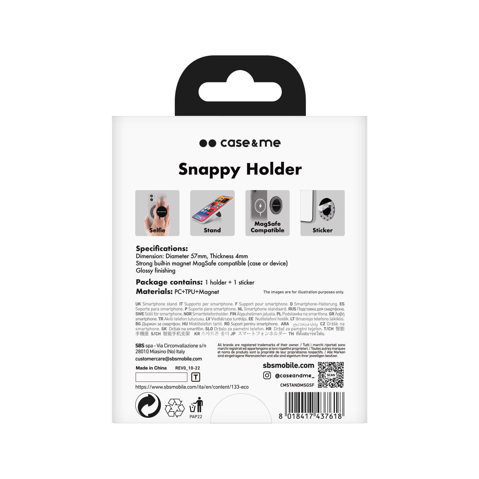 Grazie all'adesivo, potrai fissarlo nella parte posteriore di qualsiasi cellulare Apple, Samsung, Xiaomi, Huawei, Oppo e di molti altri marchi. Se hai un iPhone con ricarica MagSafe, invece, potrai attaccarlo semplicemente avvicinandolo grazie al magnete integrato.
