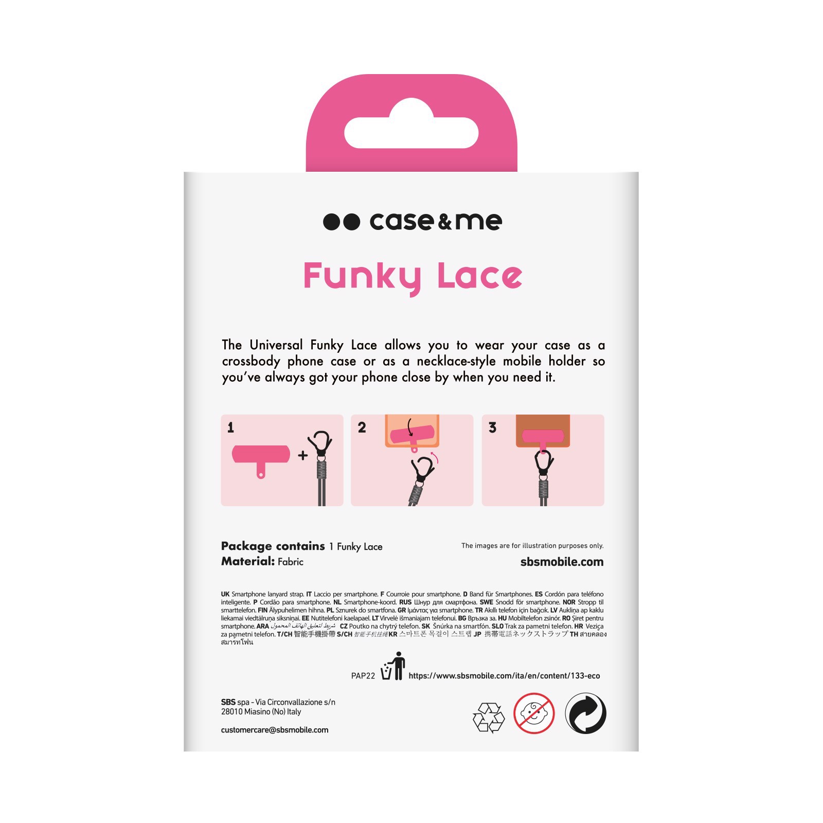 Con un solo gesto non ti resterà che attaccare il gancio in metallo del laccio per avere il tuo cellulare sempre pronto all’uso.