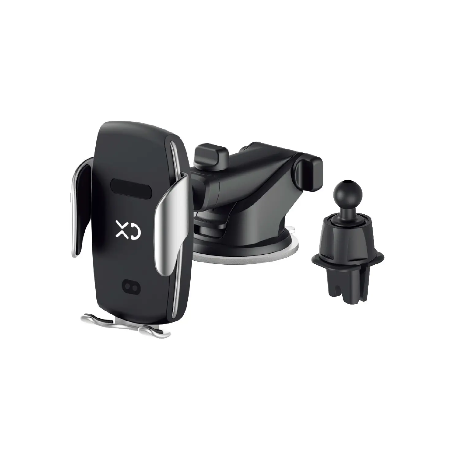 XD Enjoy Kit 2 in 1 - supporto da auto con caricabatterie wireless, Telefono cellulare/smartphone, Supporto attivo, Ideali alla guida, Nero, Argento