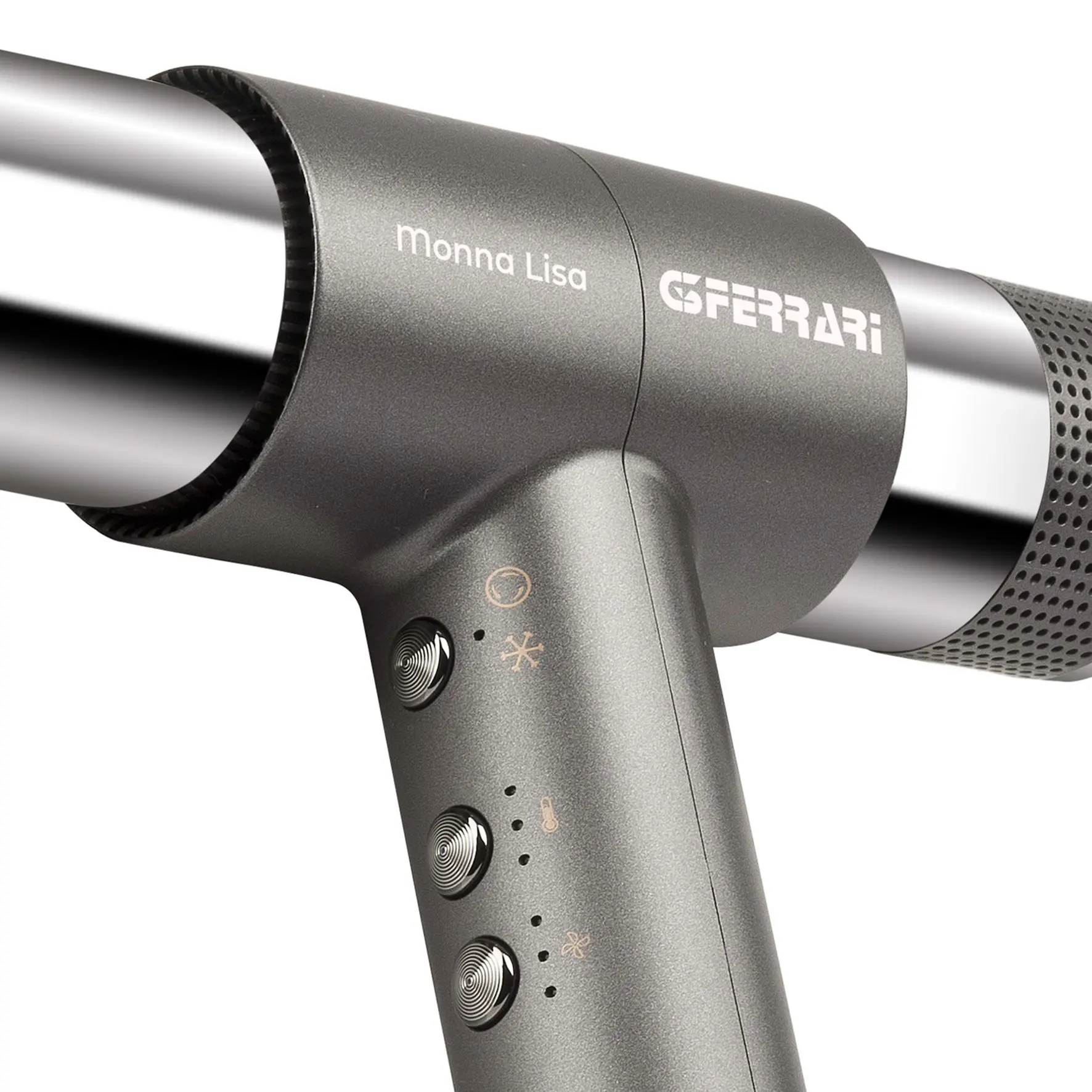 Monna Lisa è l’asciugacapelli dotato di tecnologie innovative come il motore BLDC di ultima generazione, in grado di generare un flusso d’aria ad alta potenza e velocità, per un’asciugatura più veloce e uno styling più duraturo. La tecnologia ionica oxy-active protegge il capello e sterilizza la cute, e grazie agli ioni negativi migliora la morbidezza e la brillantezza dei capelli mentre riduce secchezza ed effetto crespo. Le 9 possibili combinazioni d’uso calore/velocità permettono di scegliere il tipo di asciugatura: delicata per diffusione su capelli ricci, regolare per non danneggiare il capello, rapida per uno styling perfetto. Monna Lisa include 3 accessori specifici per ogni tipo di capelli: diffusore per capelli ricci e mossi, concentratore Styler per lisci perfetti, 2 coni Wave-Design per creare magnifiche onde. Dotato di controllo digitale e cavo extra lungo assicura la massima praticità nell’utilizzo. Leggero e compatto, è ecologico perché richiede una minore quantità di plastica per la costruzione.