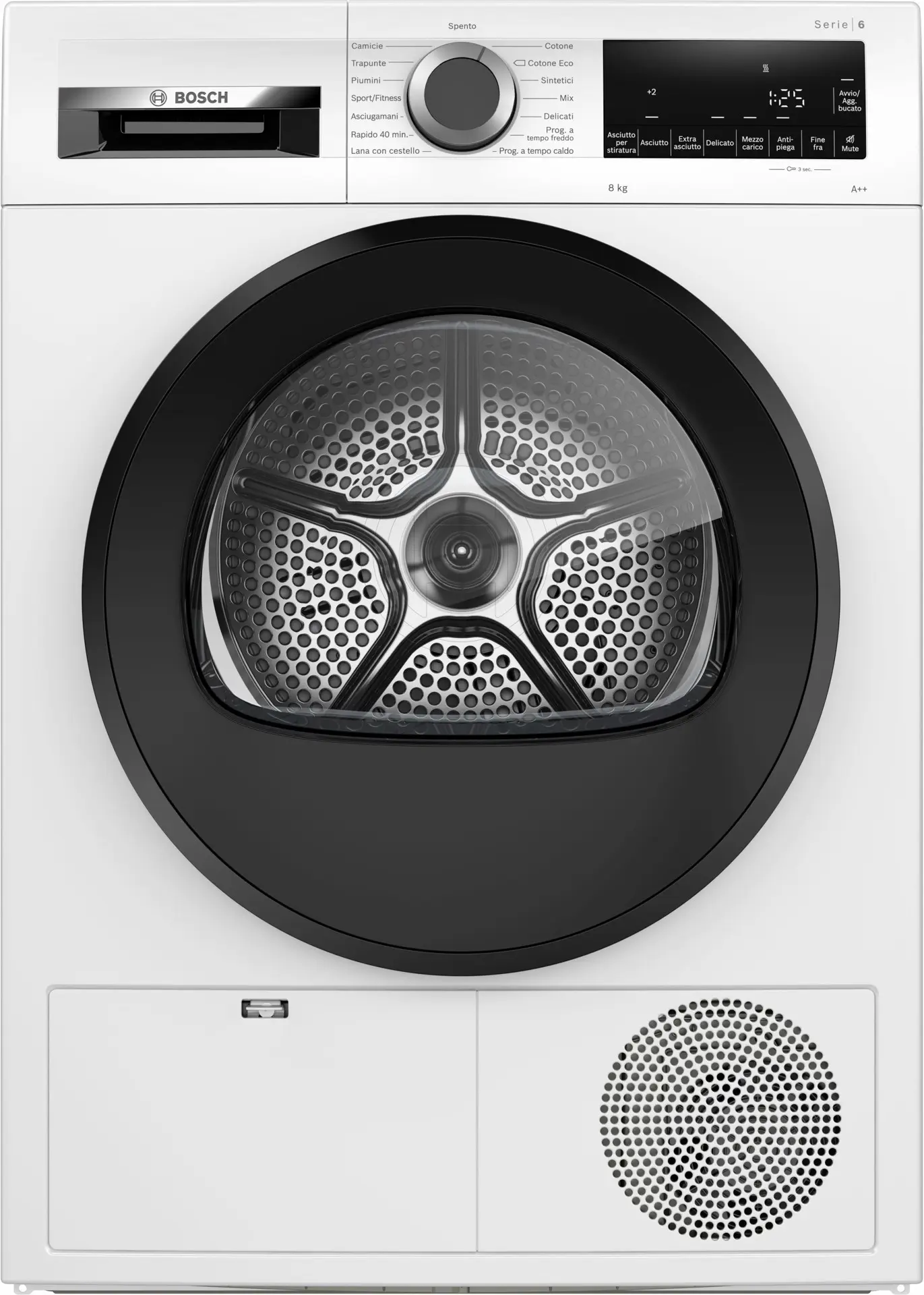 | Programmi di asciugatura | Camicia/maglietta, Cotone, Delicati/Seta, Piumino/piumone, Eco, Rapido, Sport, Sintetico, Programmato, Asciugamano |