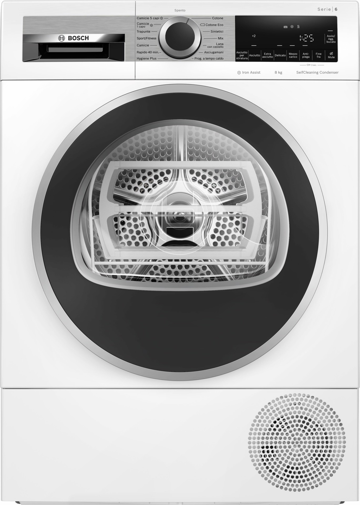Il condensatore autopulente svolge perfettamente due funzioni. In primo luogo, mantiene elevata l'efficienza energetica della tua asciugatrice, rimuovendo automaticamente la lanugine. In secondo luogo, riduce la necessità di effettuare la pulizia di routine perché la lanugine si raccoglie in un filtro facile da raggiungere.