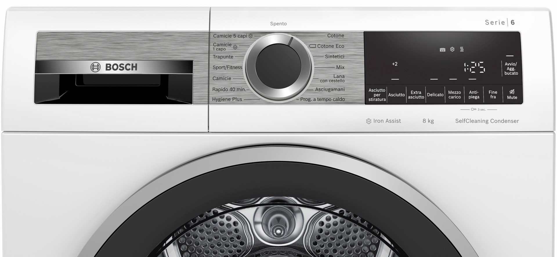 Riconosce automaticamente quando il carico ha raggiunto il preciso livello di asciugatura desiderato.