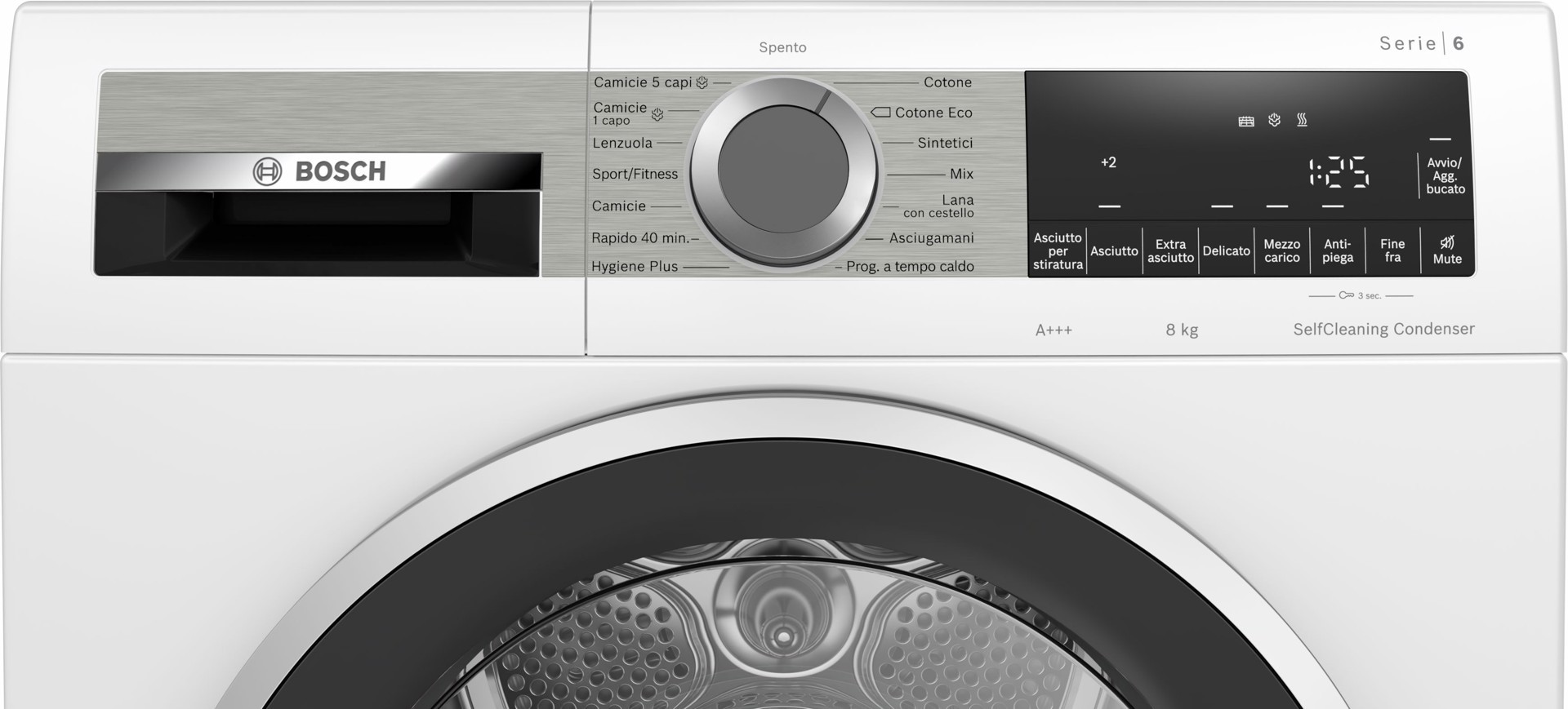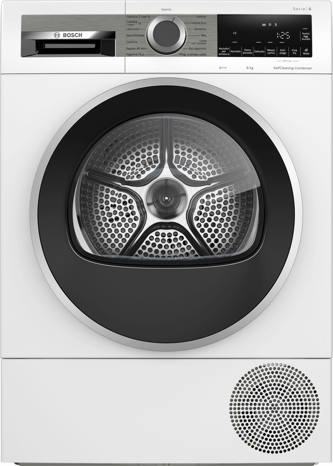 Le asciugatrici a pompa di calore con Condensatore autopulente proteggono i tuoi capi e mantengono un'alta efficienza energetica. Il condensatore si pulisce automaticamente fino a quattro volte durante il processo di asciugatura, mantenendo il massimo rendimento energetico, ciclo dopo ciclo. Le asciugatrici a pompa di calore Bosch sono progettate per funzionare in modo efficiente e asciugare i vestiti delicatamente e alla perfezione.