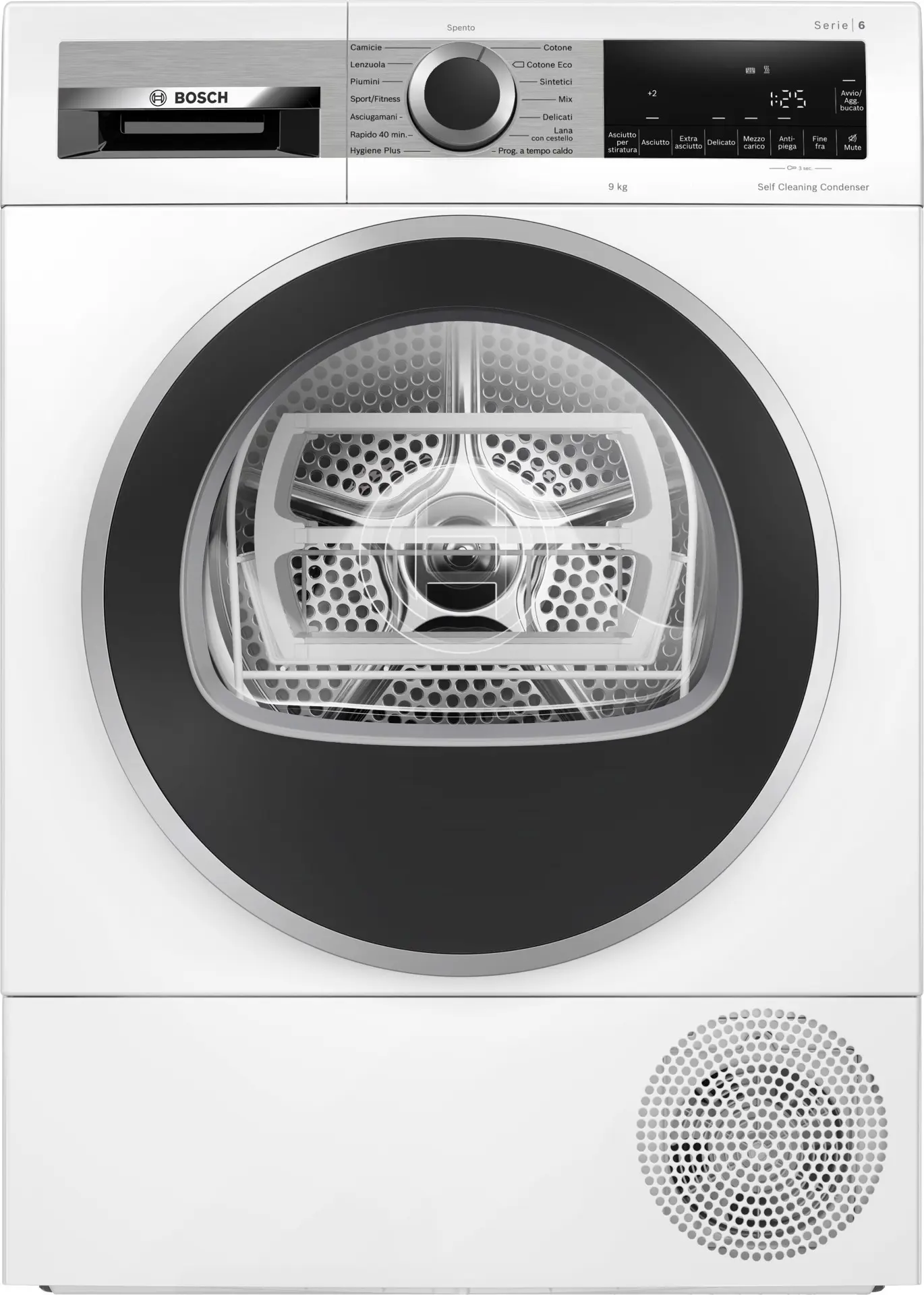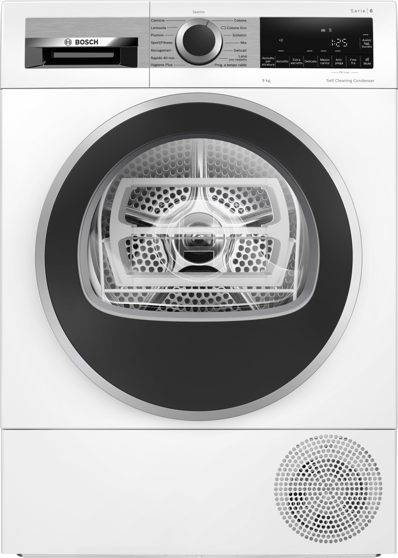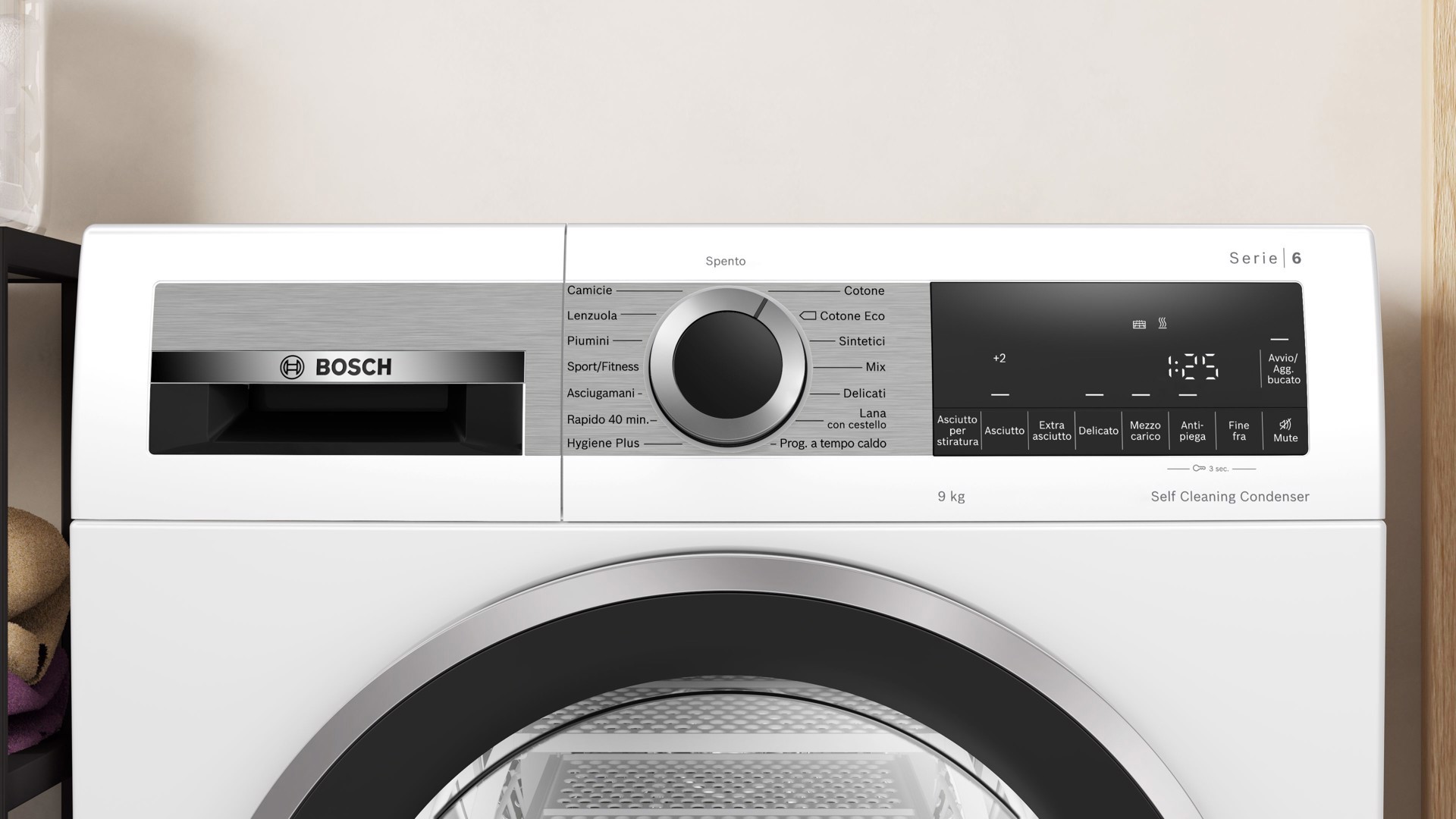 Le asciugatrici a pompa di calore con Condensatore autopulente proteggono i tuoi capi e mantengono un'alta efficienza energetica. Il condensatore si pulisce automaticamente fino a quattro volte durante il processo di asciugatura, mantenendo il massimo rendimento energetico, ciclo dopo ciclo. Le asciugatrici a pompa di calore Bosch sono progettate per funzionare in modo efficiente e asciugare i vestiti delicatamente e alla perfezione.