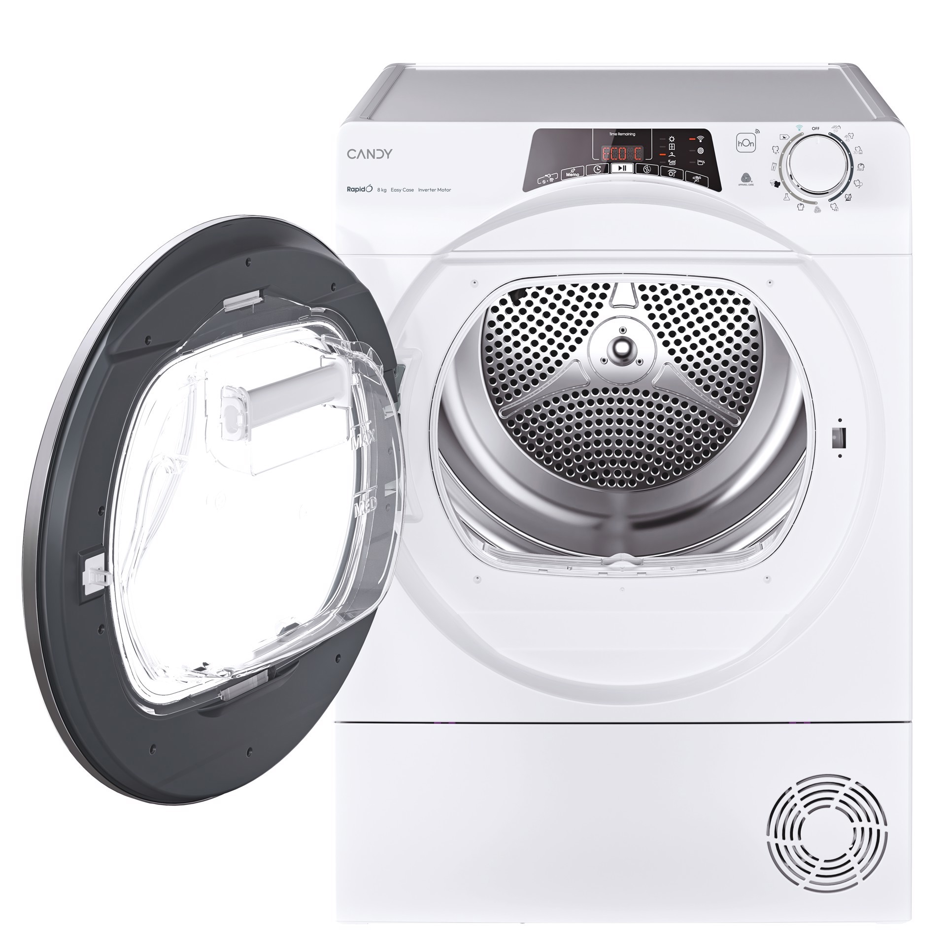 Candy RapidÓ ROE H8A3TSEX-S, Libera installazione, Caricamento frontale, Pompa di calore, Bianco, Manopola, Touch, Sinistra