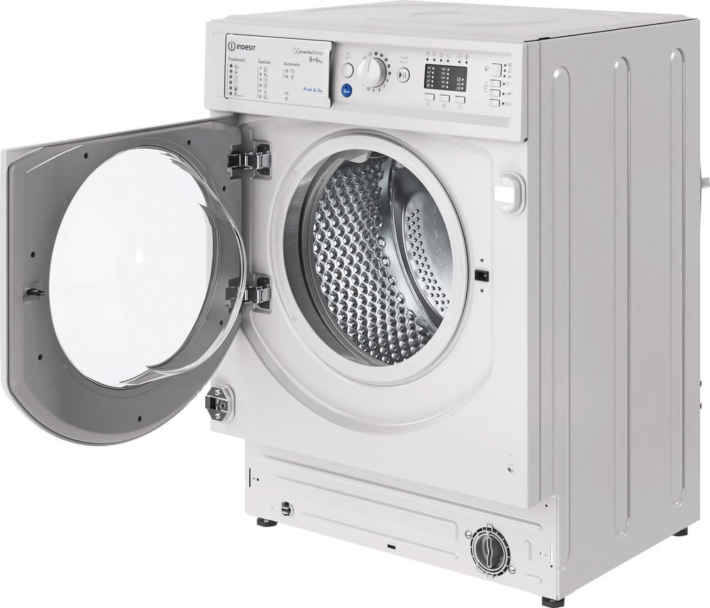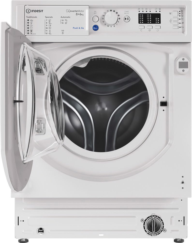 Indesit Lavasciuga da incasso BI WDIL 861485 EU - BI WDIL 861485 EU, Caricamento frontale, Da incasso, Bianco, Sinistra, Pulsanti, Manopola, Acciaio inox