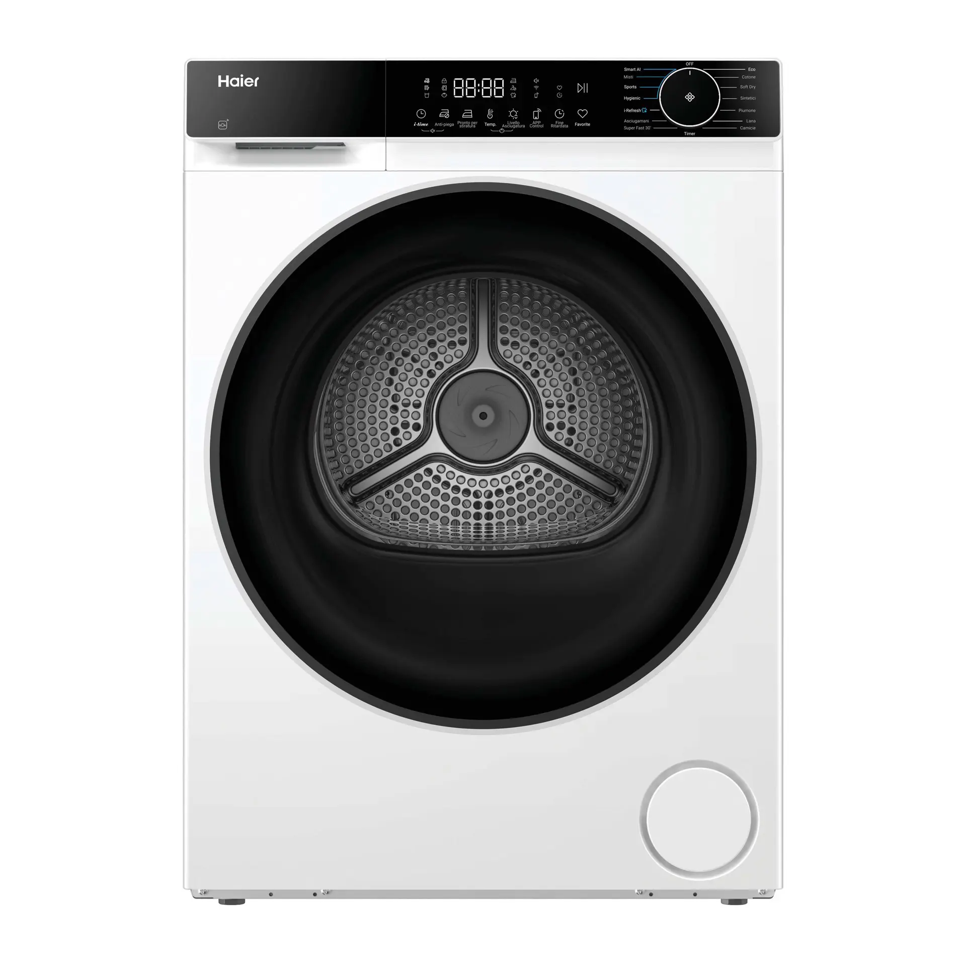Haier HD120-E357U1-IT. Posizionamento dell'apparecchio: Libera installazione, Tipo di carica: Caricamento frontale, Sistema di asciugatura: Pompa di calore. Capacità cestello: 12 kg, Classe di efficienza della condensazione: B, Programmi di asciugatura: Cotone, Piumino/piumone, Eco, Hygienic drying, Mix, Rapido, Refresh, Shirts, Sport, Sintetico,.... Applicazioni per il controllo supportate: hOn, Funzioni delle app: Diagnostica remota, Monitoraggio remoto, Avvio a distanza. Classe efficienza energetica: E, Consumo energetico per 100 cicli: 171 kWh, Consumo energetico: 1,71 kWh. Profondità: 690 mm, Larghezza: 600 mm, Altezza: 845 mm