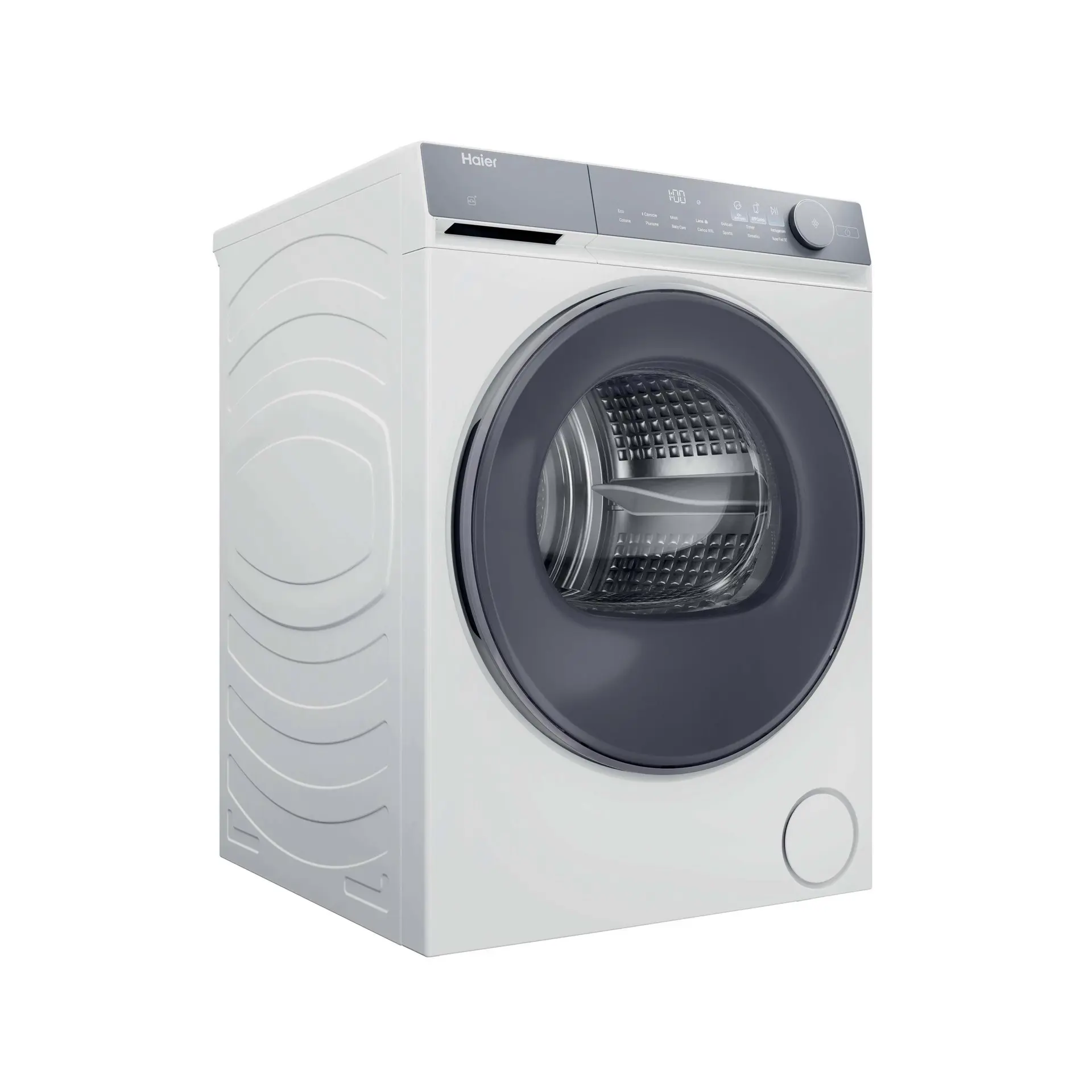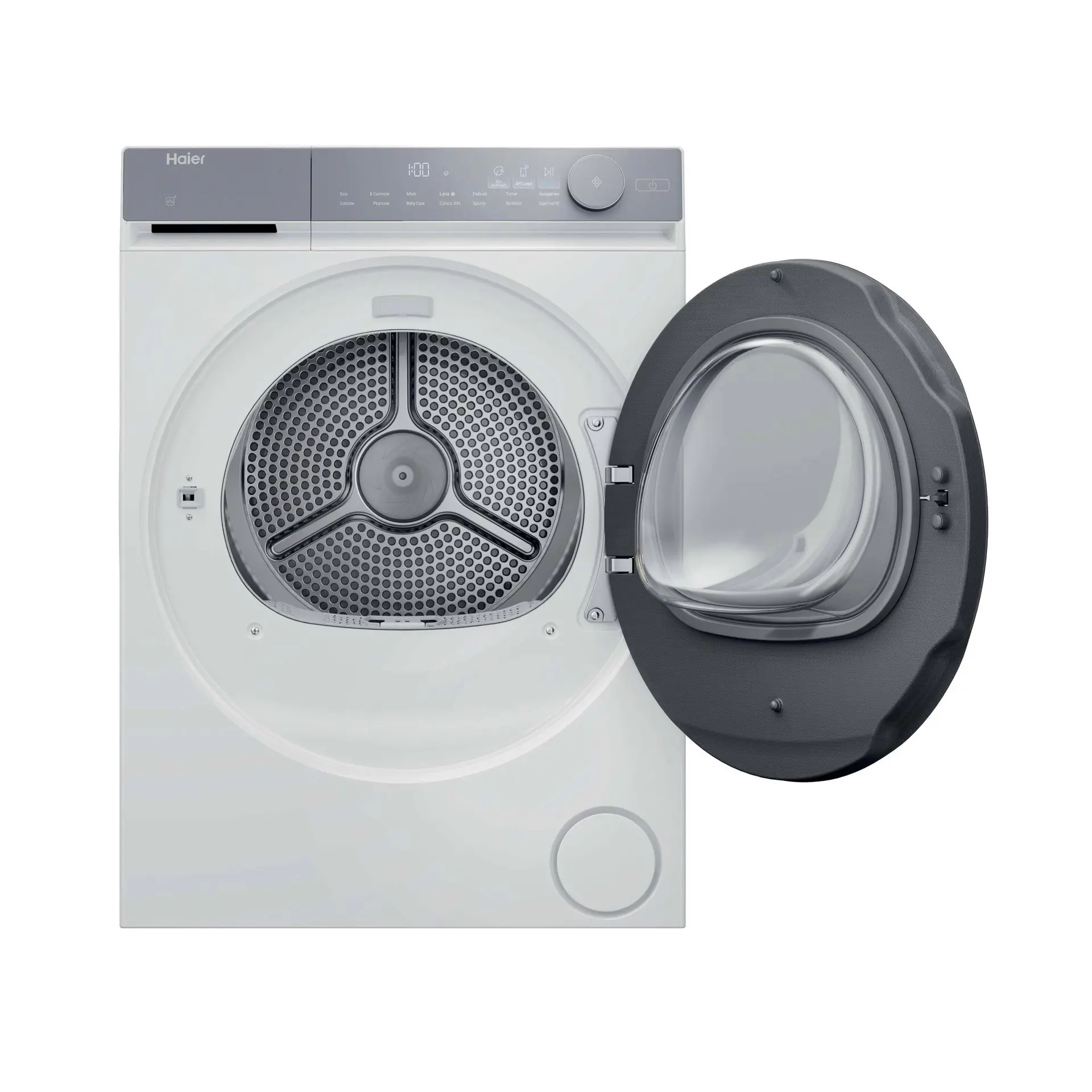Haier X Series 7 , Asciugatrice 9 KG, Classe A, Bianco, AI PowerInverter, I-Refresh, Wi-Fi, Smart AI, HD90-A367U1-IT. Posizionamento dell'apparecchio: Libera installazione, Tipo di carica: Caricamento frontale, Sistema di asciugatura: Pompa di calore. Capacità cestello: 9 kg, Classe di efficienza della condensazione: B, Programmi di asciugatura: Cura del bambino, Cotone, Delicati/Seta, Piumino/piumone, Download cycle, Eco, Hygienic drying,.... Applicazioni per il controllo supportate: hOn, Funzioni delle app: Diagnostica remota, Monitoraggio remoto, Avvio a distanza. Classe efficienza energetica: A, Consumo energetico per 100 cicli: 79 kWh, Consumo energetico: 0,79 kWh. Profondità: 690 mm, Larghezza: 595 mm, Altezza: 845 mm