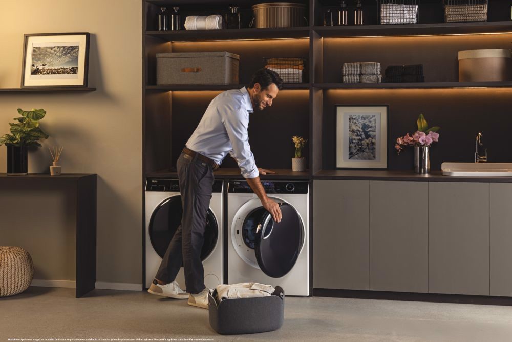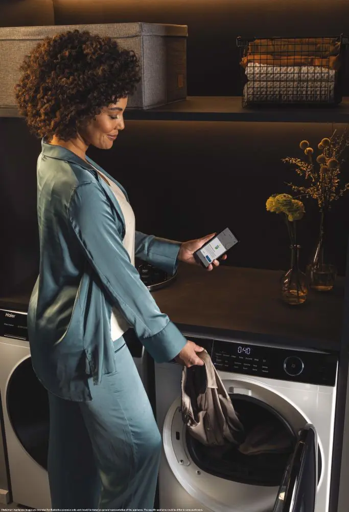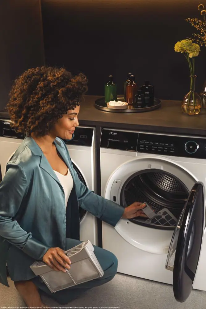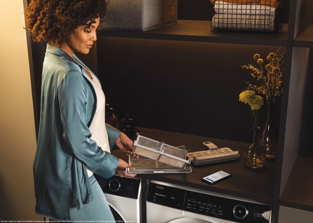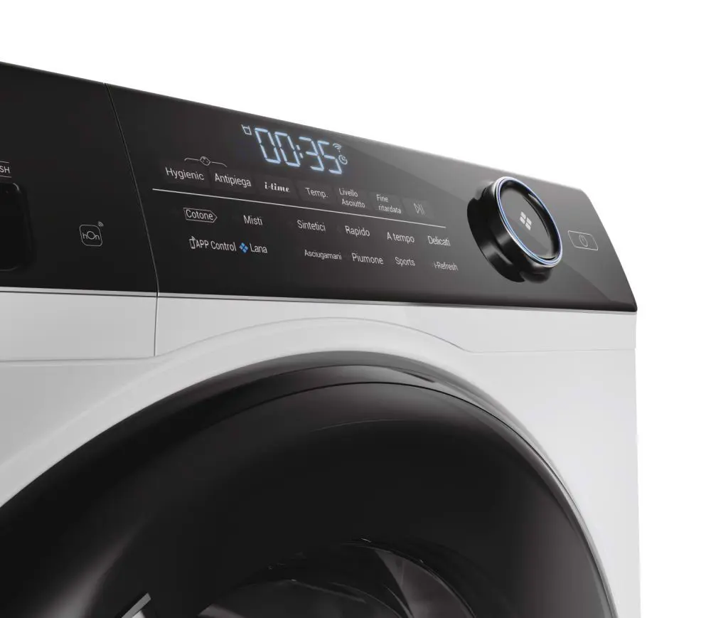 Haier I-Pro Series 5 HD90-A3959, Libera installazione, Caricamento frontale, Pompa di calore, Bianco, Manopola, Touch, Nero
