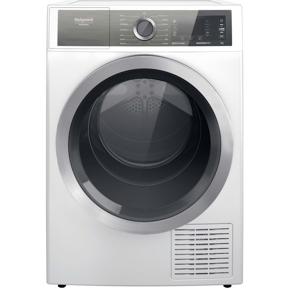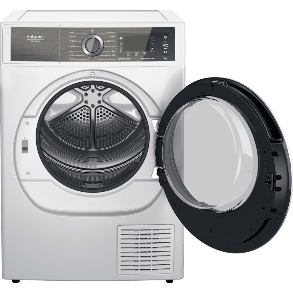 Hotpoint Ariston Gentle Power Asciugatrice a libera installazione H8 D94WB IT, Libera installazione, Caricamento frontale, Pompa di calore, Bianco, Pulsanti, Manopola, Touch, Destra