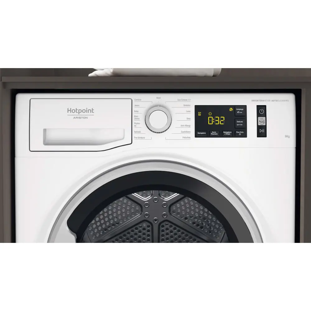 Hotpoint Ariston Active Asciugatrice a libera installazione NT M11 9X3SKY IT, Libera installazione, Caricamento frontale, Pompa di calore, Bianco, Pulsanti, Manopola, Destra