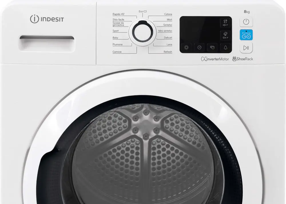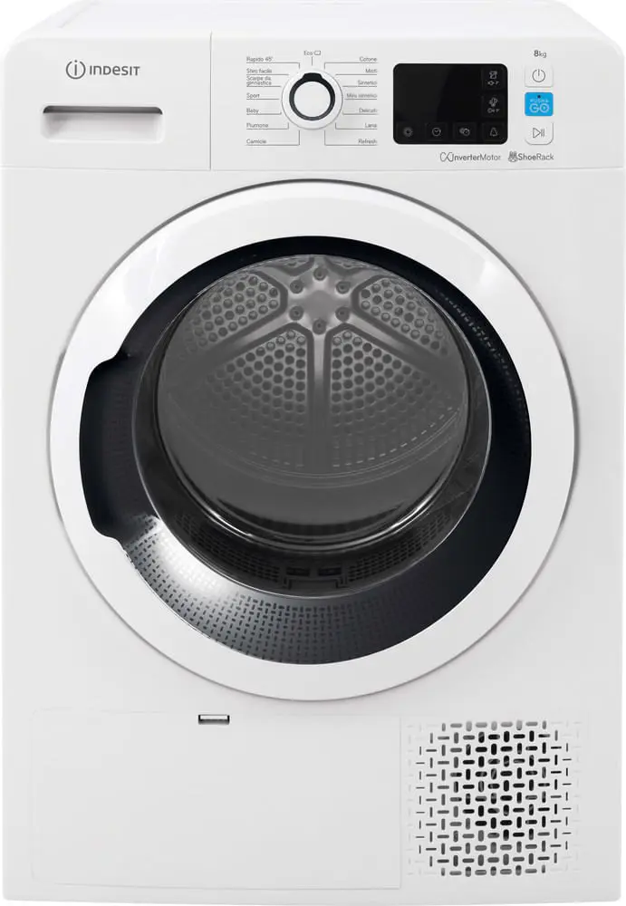 Indesit Push&GO Asciugatrice YTN M11 83K RX IT - YTN M11 83K RX IT, Libera installazione, Caricamento frontale, Pompa di calore, Bianco, Pulsanti, Manopola, Destra