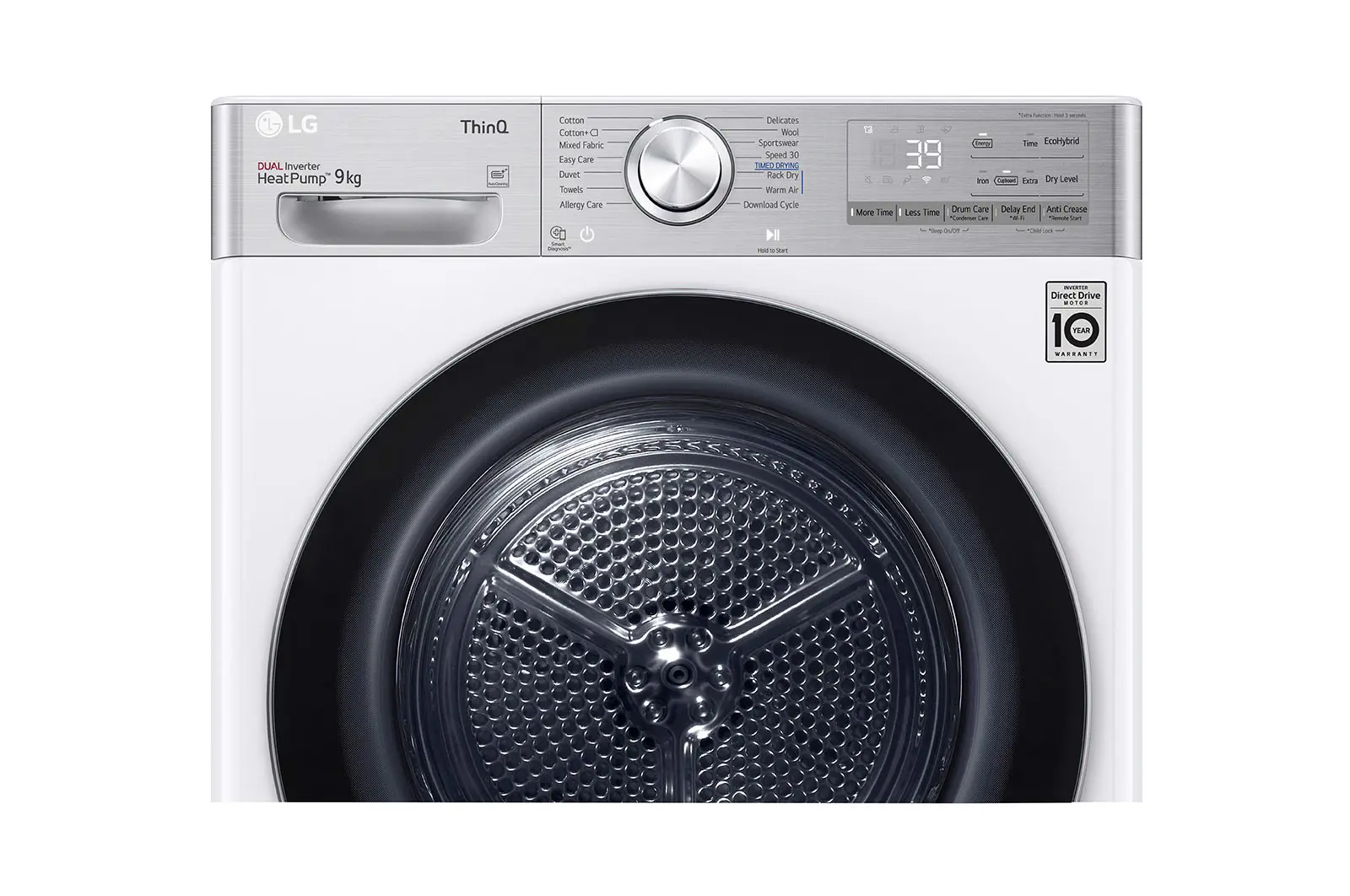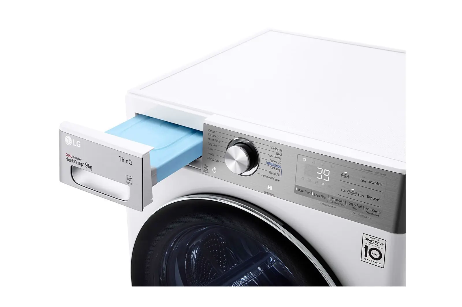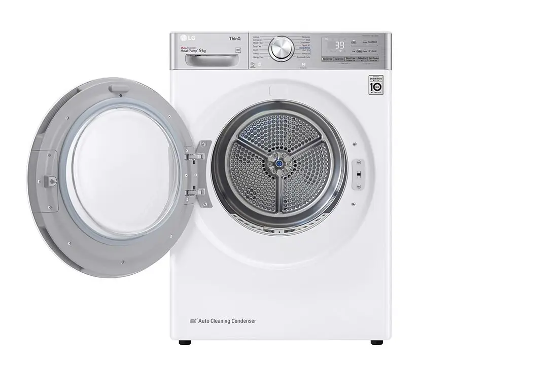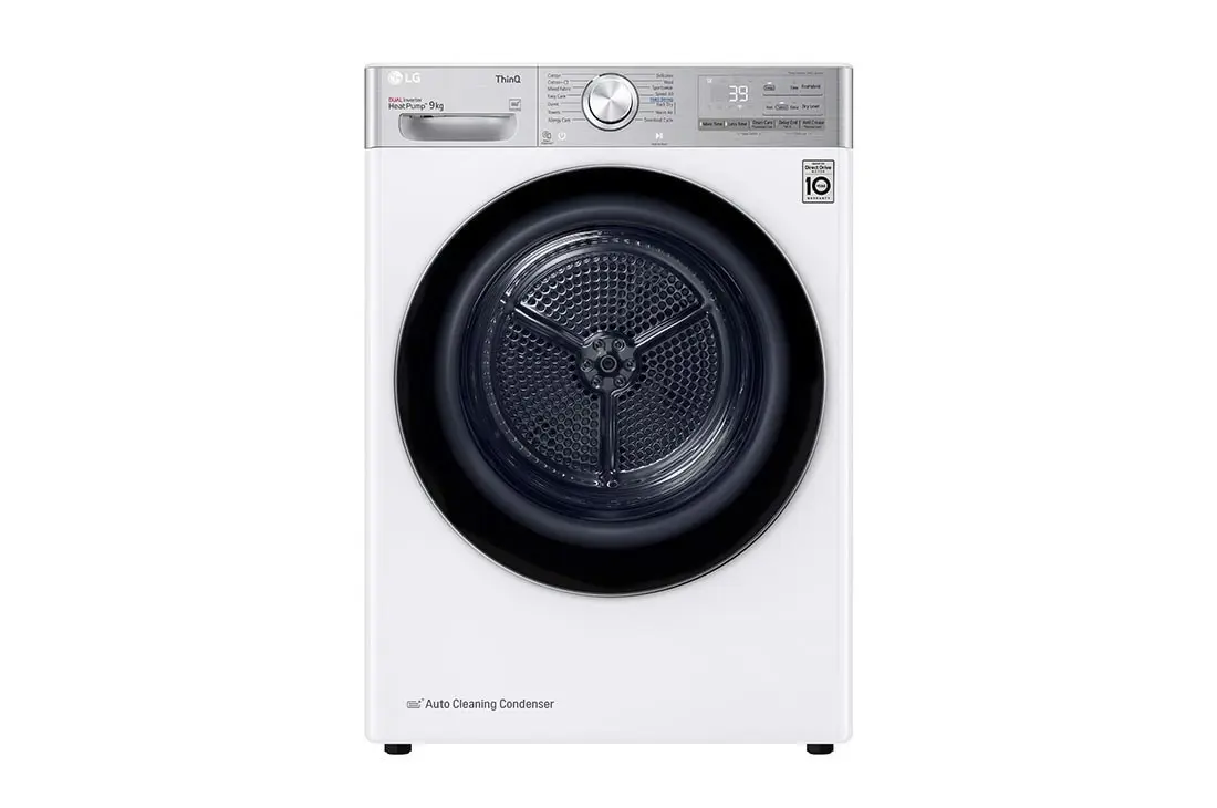LG RH90V9AV2QR, Libera installazione, Caricamento frontale, Pompa di calore, Bianco, Manopola, Touch, Destra