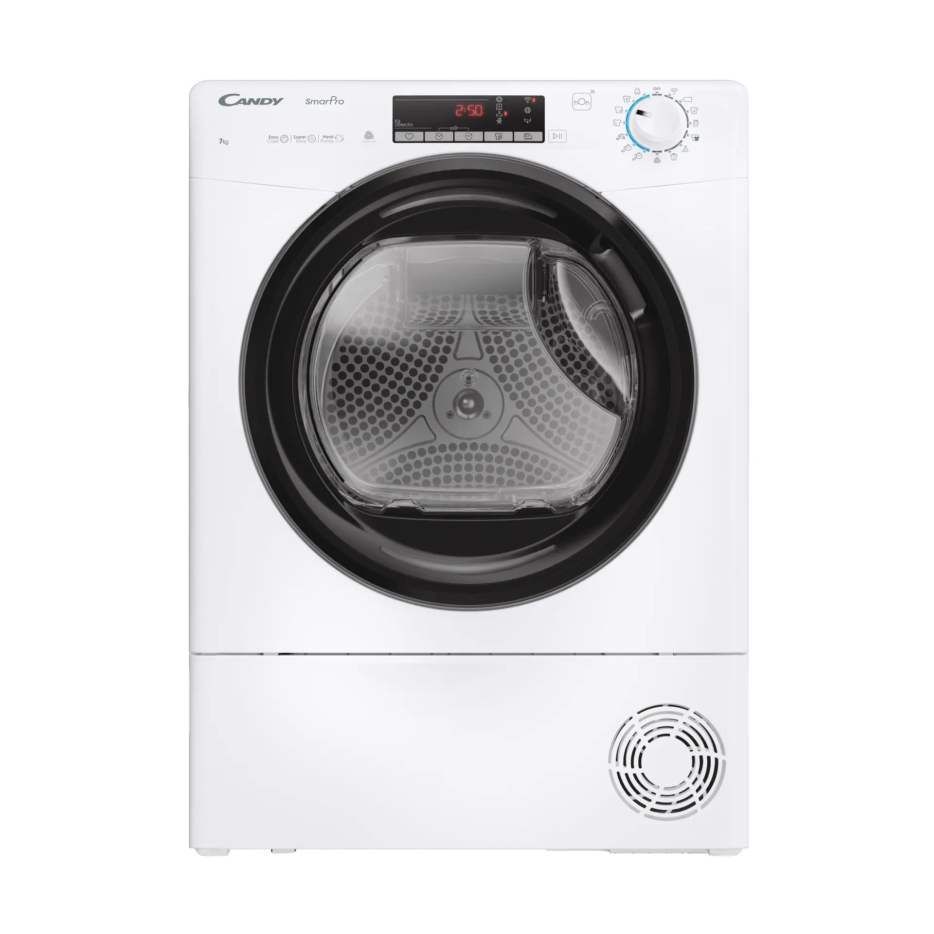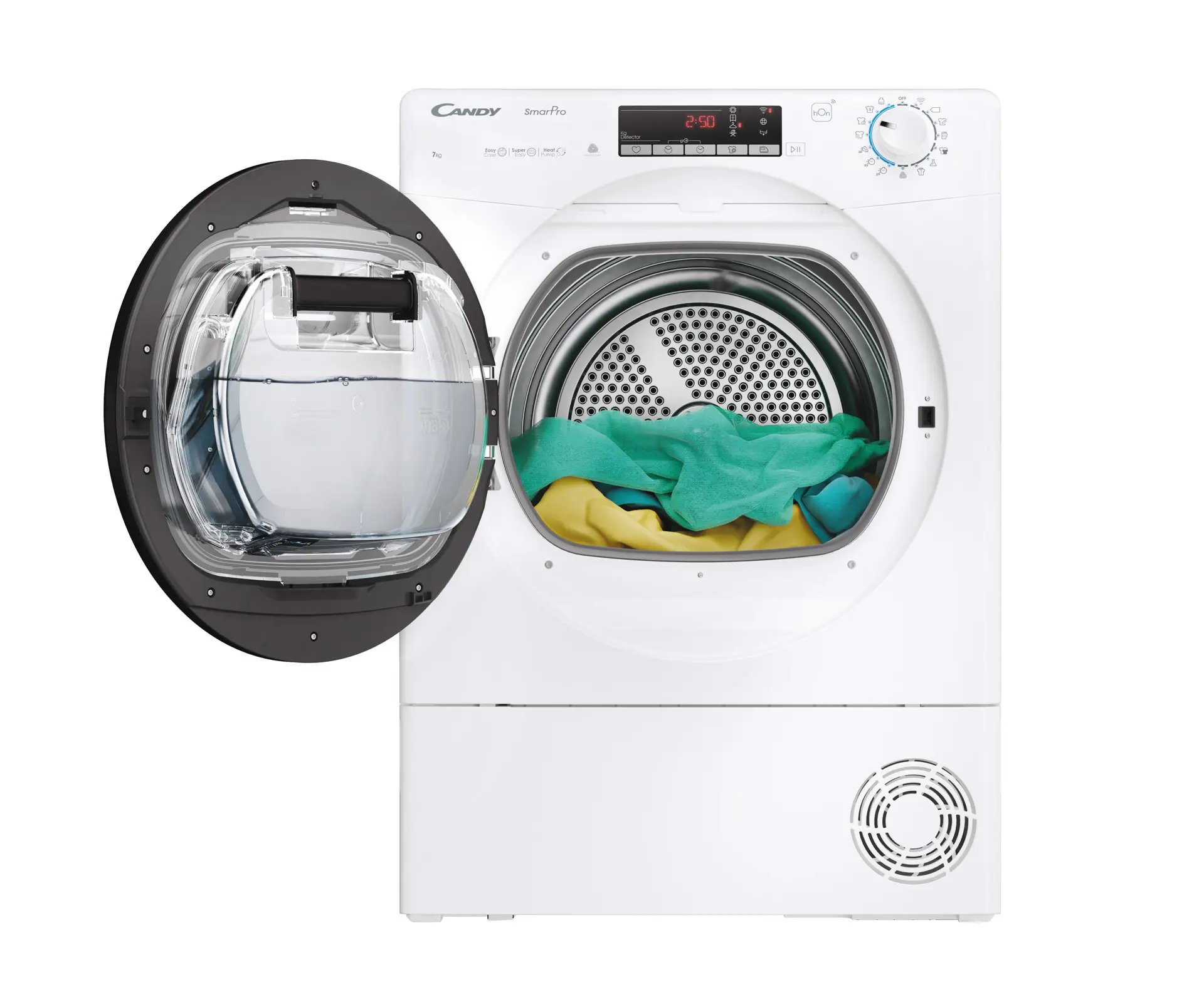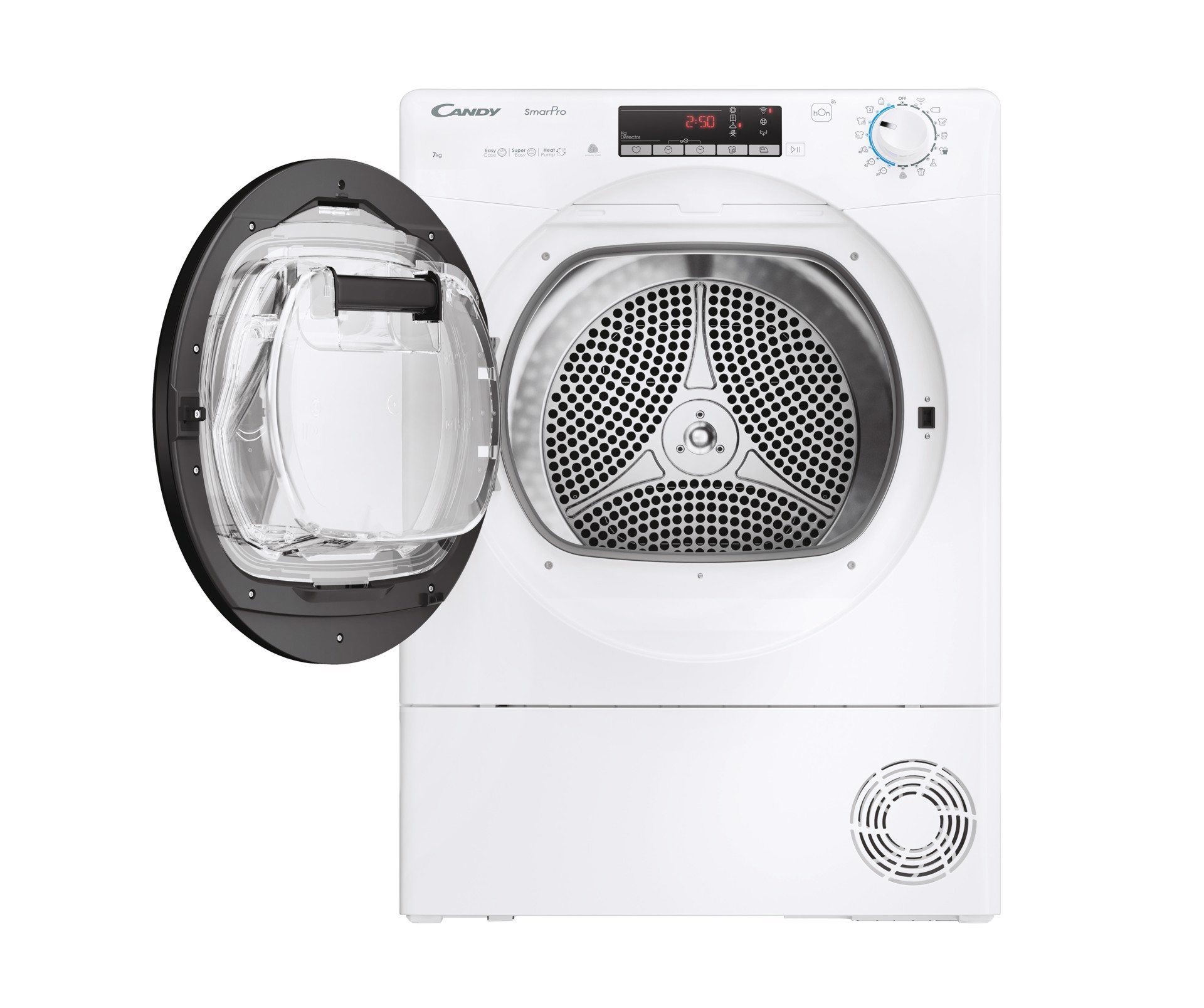 Candy Smart Pro CRO4 H7A2TBE-S, Libera installazione, Caricamento frontale, Pompa di calore, Bianco, Manopola, Touch, Nero