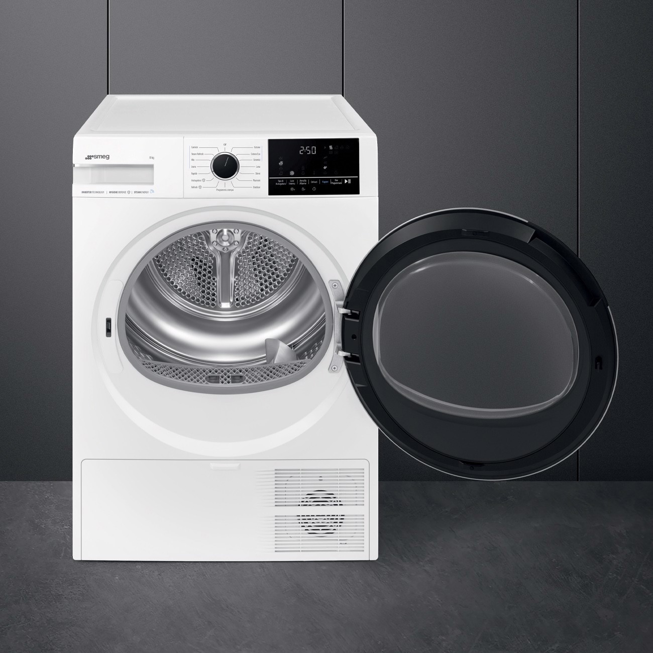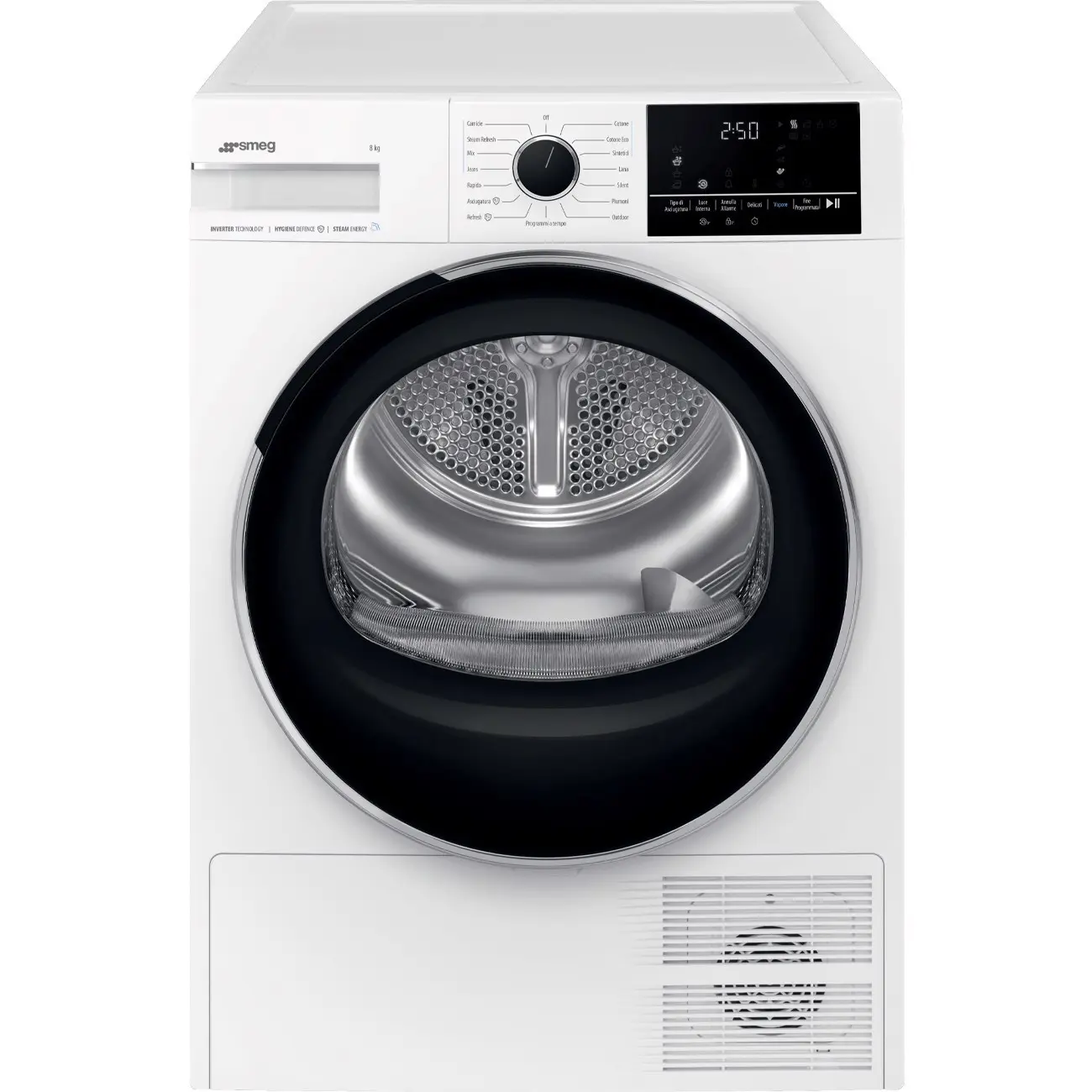 Smeg DNP08SEB, Libera installazione, Caricamento frontale, Pompa di calore, Bianco, Manopola, Touch, Destra