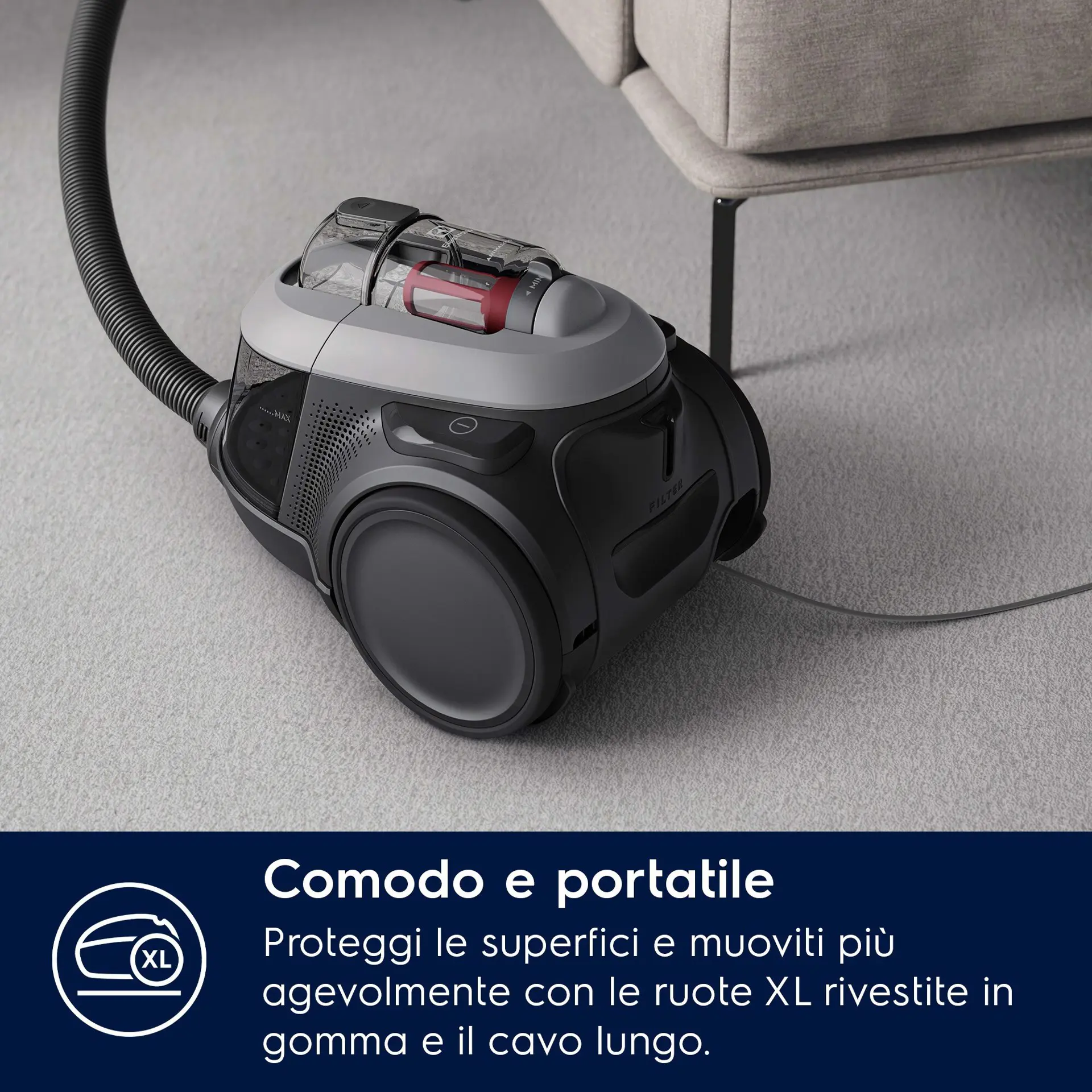 Electrolux EL61A4UG Aspirapolvere senza sacco serie 600, Senza sacchetto, Grigio, 9 m, Lamina di scorrimento, 2 ruota(e), Secco