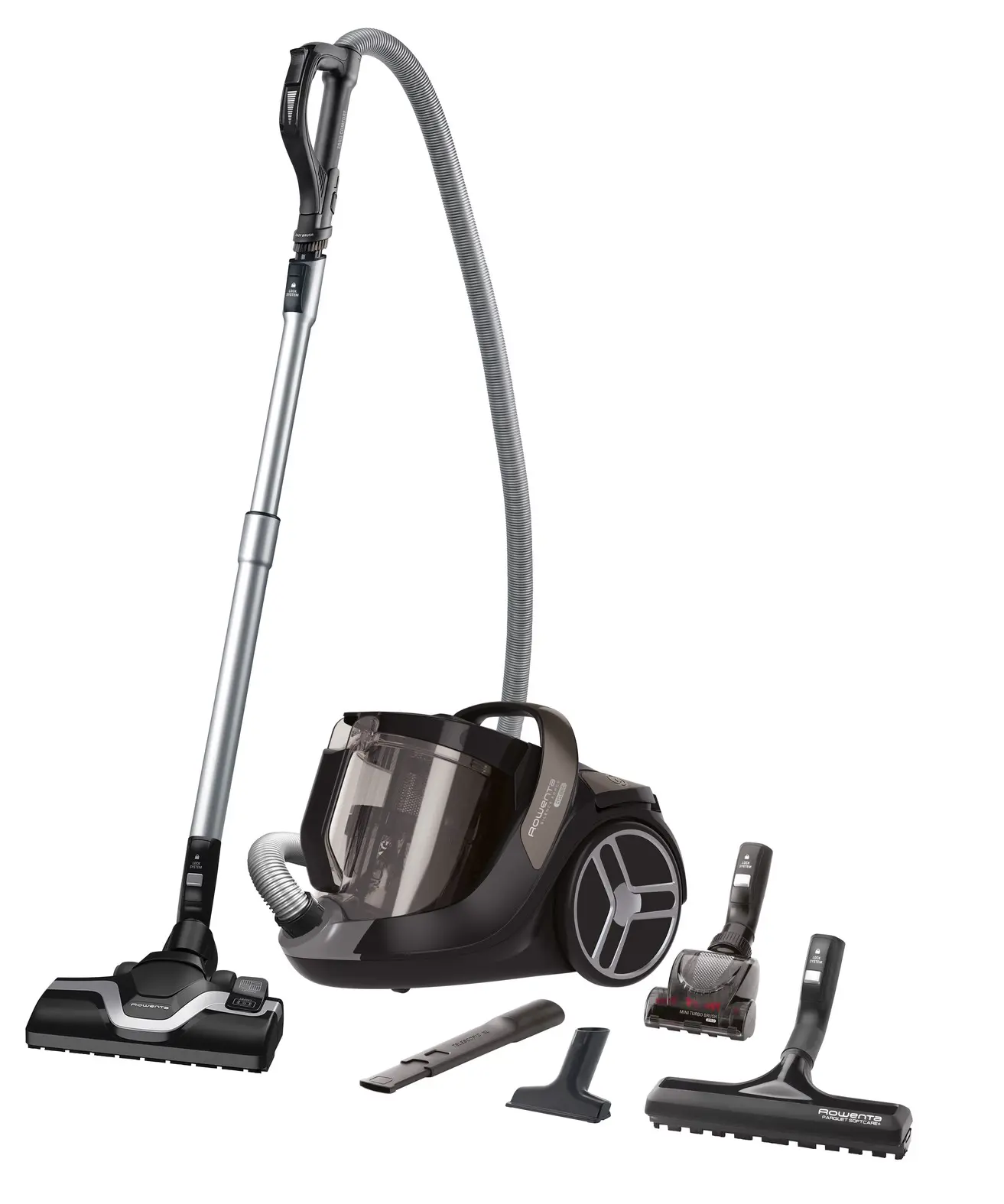 Rowenta Silence Force RO726. Massima potenza in entrata: 550 W. Tipo: A cilindro, Tipo di pulizia: Secco, Tipo di contenitore della polvere: Senza sacchetto, Capacità del contenitore: 2,5 L. Sistema di filtraggio dell'aspirapolvere: Schiuma, Metodo di separazione dello sporco: Ciclonico, Emissione acustica: 67 dB. Colore del prodotto: Marrone, Grigio