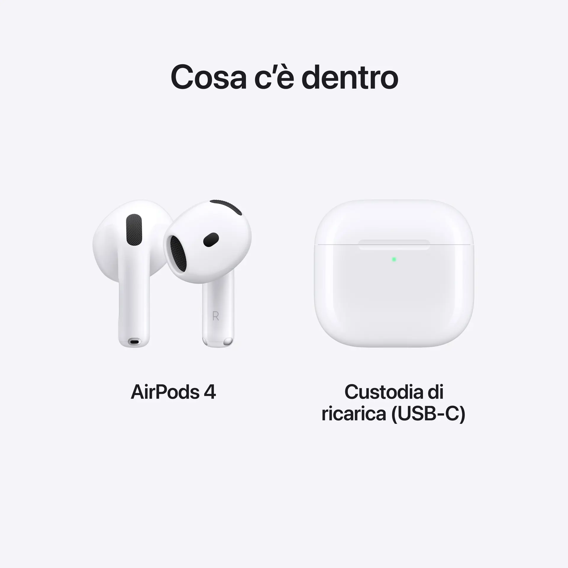 Apple AirPods (4th generation) AirPods 4, Wireless, Chiamate/Musica/Sport/Tutti i giorni, Auricolare, Bianco