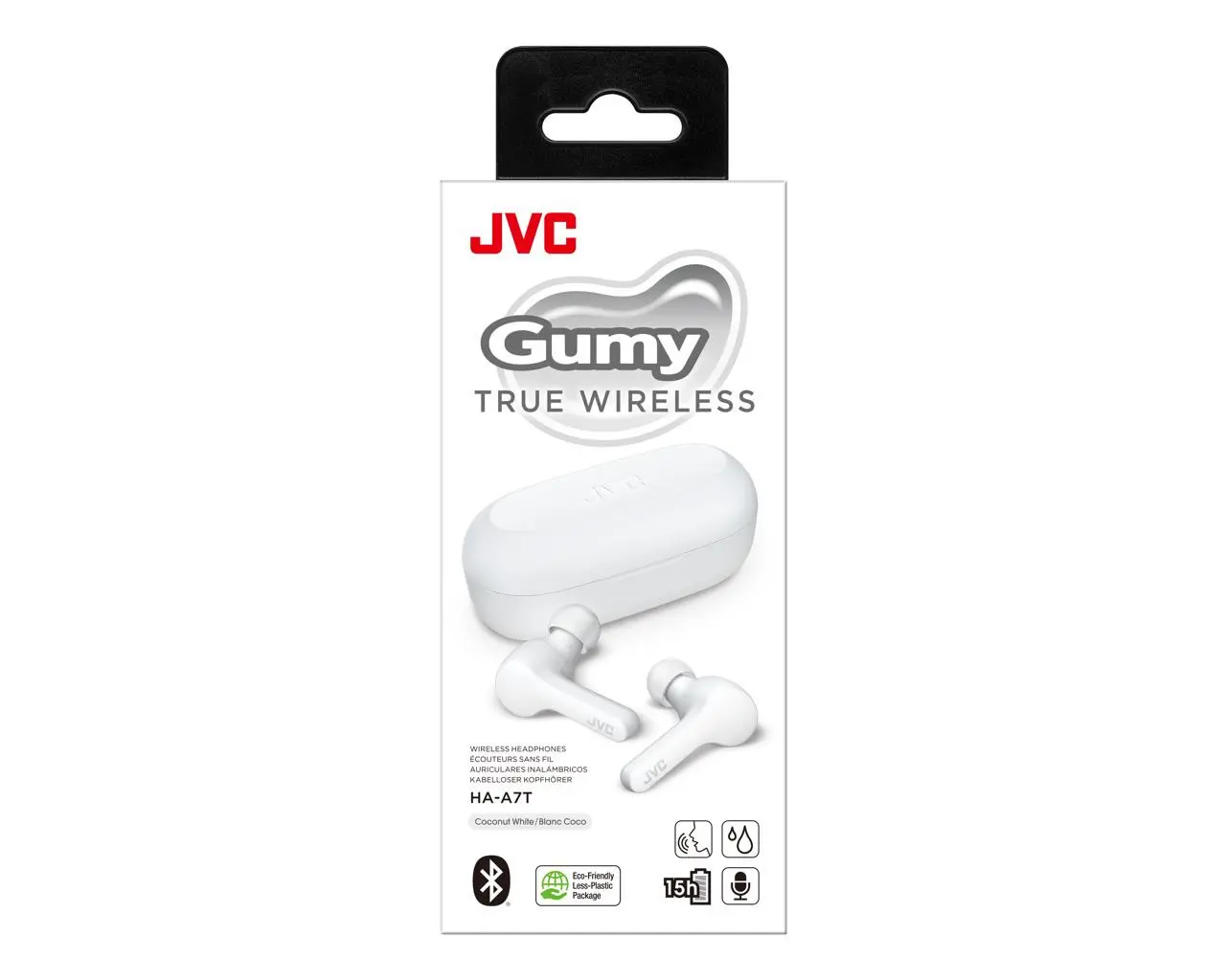 JVC HA-A7T-W. Tipo di prodotto: Cuffia, Stile d'uso: Auricolare, Utilizzo raccomandato: Chiamate e musica. Tecnologia di connessione: Senza fili, Connettore USB: Micro-USB, Profili Bluetooth: A2DP,AVRCP,HFP,SBC. Frequenza cuffia: 20 - 20000 Hz, Impedenza: 16 Ω, Tipo di magnete: Neodimio. Tipo di microfono: Integrata. Tecnologia batteria: Polimeri di litio (LiPo), Durata batteria: 15 h, Riproduzione audio continua: 6 h