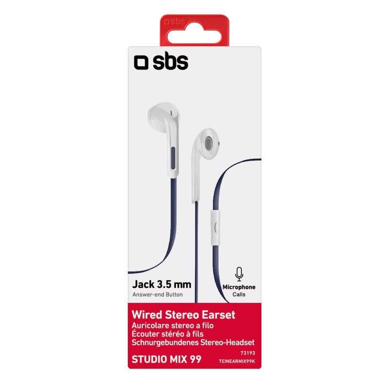 SBS Auricolari stereo a filo Studio Mix 99, Cablato, Musica e Chiamate, 20 - 20000 Hz, Auricolare, Blu
