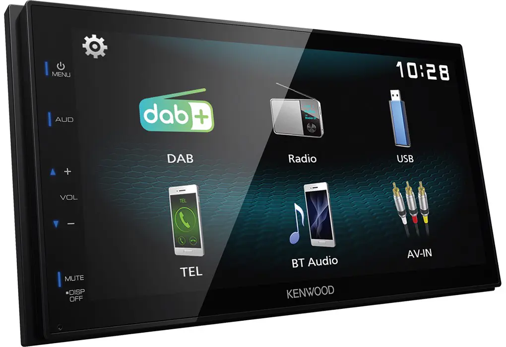 Kenwood DMX125DAB. Colore del prodotto: Nero, Grandezza DIN: 2 DIN, Potenza in uscita: 84 W. Convertitore Audio D/A: 24bit, Formati audio supportati: AAC, FLAC, MP3, WAV, WMA, Formati video supportati: H.264, MKV, MPEG1, MPEG2, MPEG4, WMV. Tipo di display: TFT, Dimensioni schermo: 17,1 cm (6.75"), Risoluzione del display: 800 x 480 Pixel. Versione Bluetooth: 2.1+EDR, Profili Bluetooth: A2DP, HFP, PBAP, Funzioni di Bluetooth: Audio in streaming, Vivavoce. Bande del sintonizzatore: AM, DAB, DAB+, FM, LW, MW, Banda FM: 87,5 - 108 MHz, Banda AM: 531 - 1611 kHz