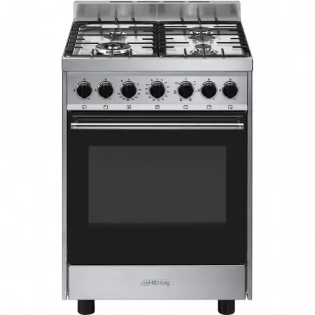 Smeg B601GMXI9. Tipo di prodotto: Piano cottura, Colore del prodotto: Acciaio inossidabile, Tipo di controllo: Manopola. Tipo di piano cottura: Gas, Numero totale elementi piano cottura: 4 Fornello(i), Tipo di gas: Gas naturale. Dimensione del forno: Media, Sorgente di alimentazione del forno: Elettrico, Capacità netta del forno: 70 L. Classe efficienza energetica: A, Consumo energetico (convenzionale): 1,15 kWh, Potenza aggregata (elettrica): 3000 W. Larghezza: 598 mm, Profondità: 598 mm, Altezza: 915 mm