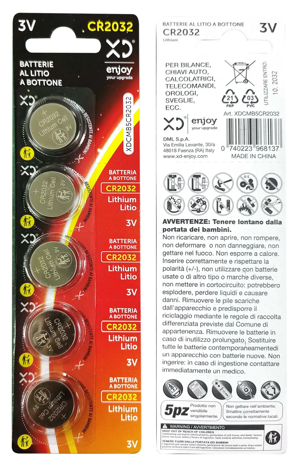 XD Enjoy XDCMB5CR2032 batteria per uso domestico Batteria monouso CR2032 Litio