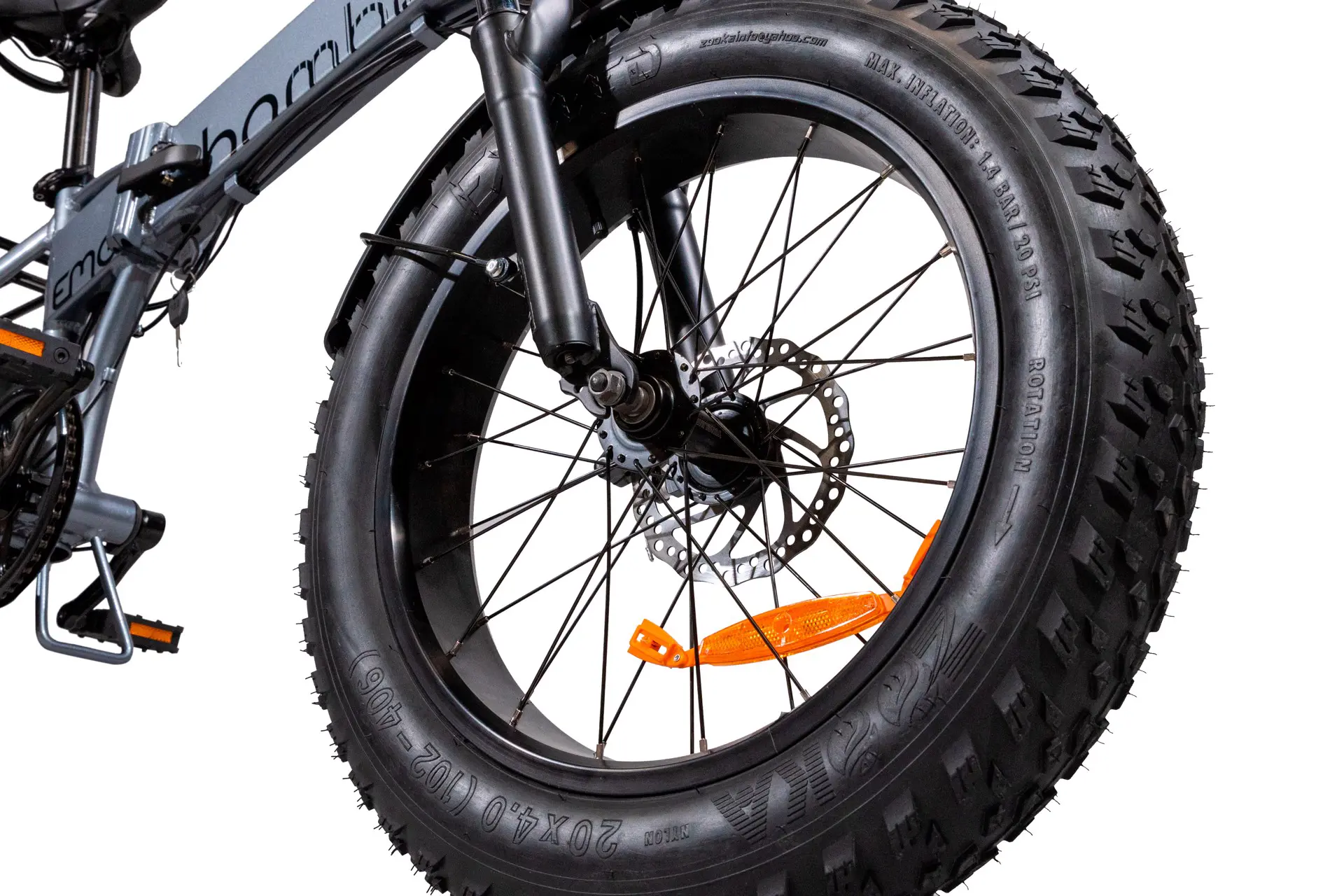 EMG Bici Elettrica Fat Bike Bomber 250W con telaio 17" foldable, ruota 20", Freni a disco a/p, Cambio Shimano e batteria 10Ah