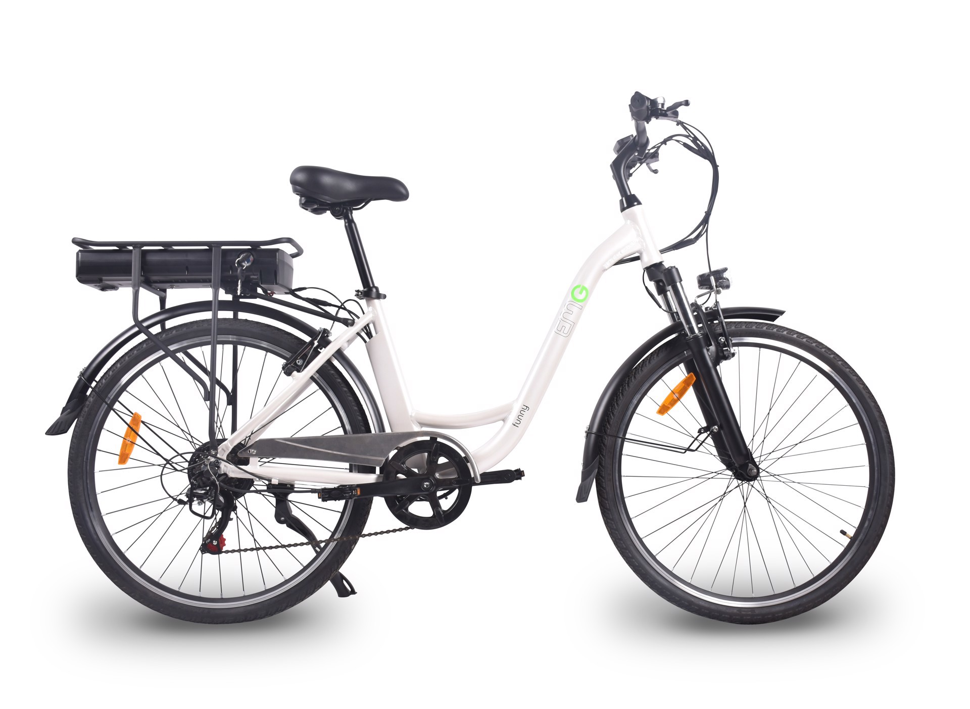 Telaio in alluminio con ruota da 26”, Funny offre agilità di guida e stabilità ad ogni singolo chilometro percorso. La sua batteria al Lithio da 36V 13Ah offre un’autonomia di circa 80 km, ideale anche per lunghi tragitti. La potenza motore da 250W e il cambio Shimano a 6 velocità fino ad un massimo di 25 km/h faranno di Funny l’e-bike ideale per la tua quotidianità.