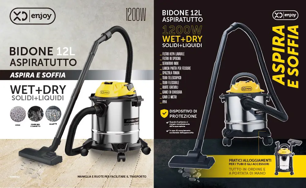XD Enjoy XDMWD012 aspirapolvere a traino 12 L Aspiratore a cilindro Secco e bagnato 1200 W