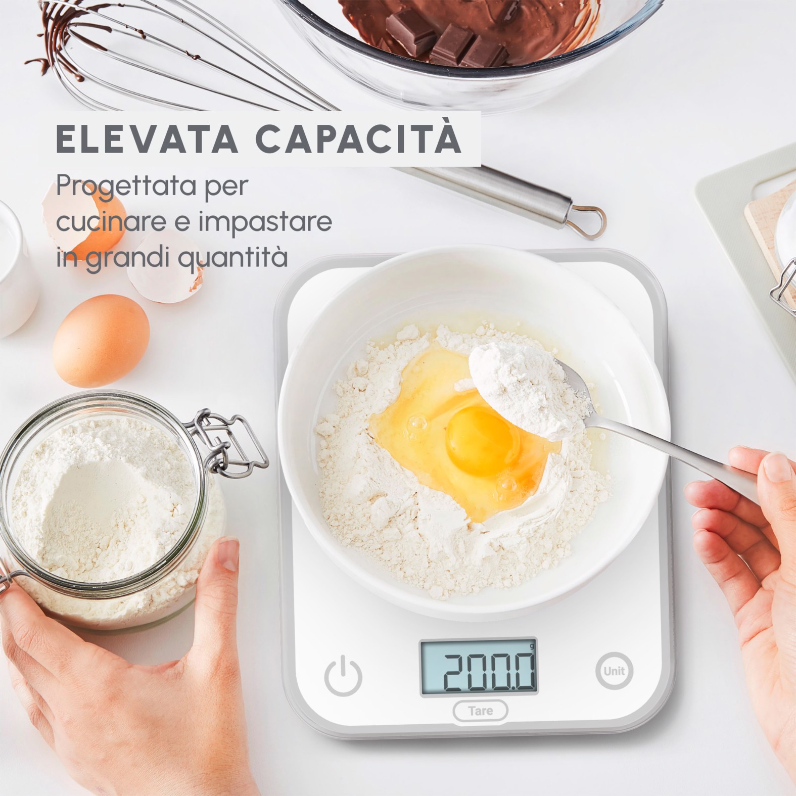 Bilancia da cucina digitale che semplifica la preparazione degli ingredienti grazie all'ampio schermo LCD